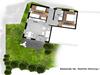 - Wohnzimmer im Erdgeschoß mit Sofa, Sesseln, und Esstisch.