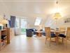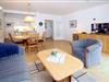 - Wohnzimmer mit Couch, 2 Sesseln, Esstisch mit 4 Stühlen, TV