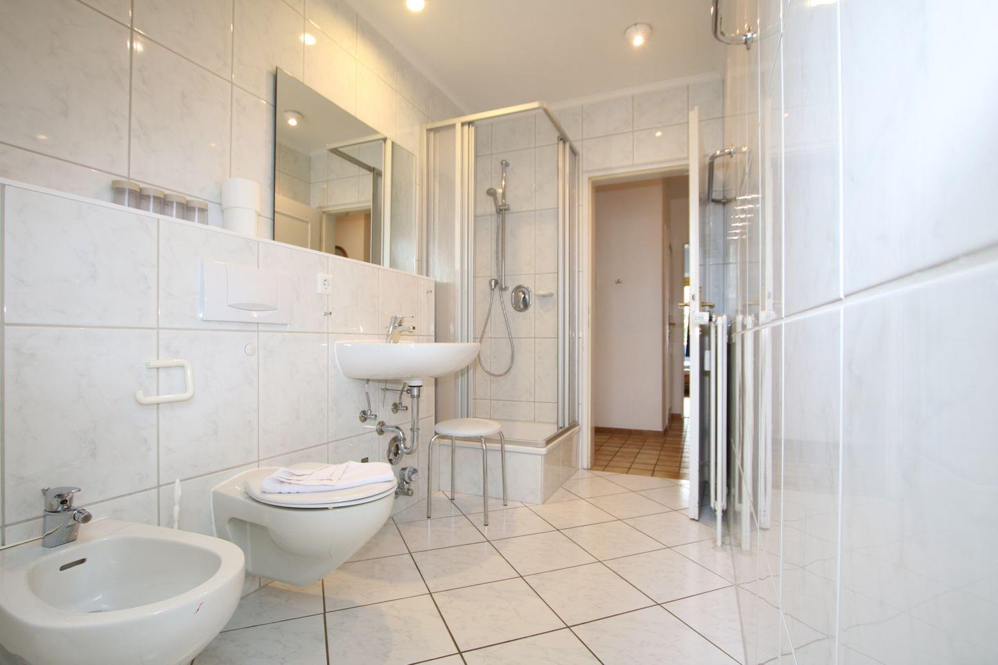 SCHLAFZIMMER 2 mit zwei Einzelbetten. BAD mit Dusche, WC und Bidet. FLUR mit Garderobe und Schrank. Abstellkammer. Internetanschluss Wlan. Im KELLER stehen Waschmaschine und Trockner zur Verfügung. Großer Saunabereich mit Dusche, WC und 2 Ruheliegen. Einkaufsmöglichkeiten in der Nähe. In die Innenstadt sind es ca. 20 Minuten Fußweg auf der Promenade am Meer entlang, zum Strand ca. 2 Minuten Fußweg durch den Kurpark. Sehr gepflegte Wohnung in ruhiger und strandnaher Lage.