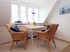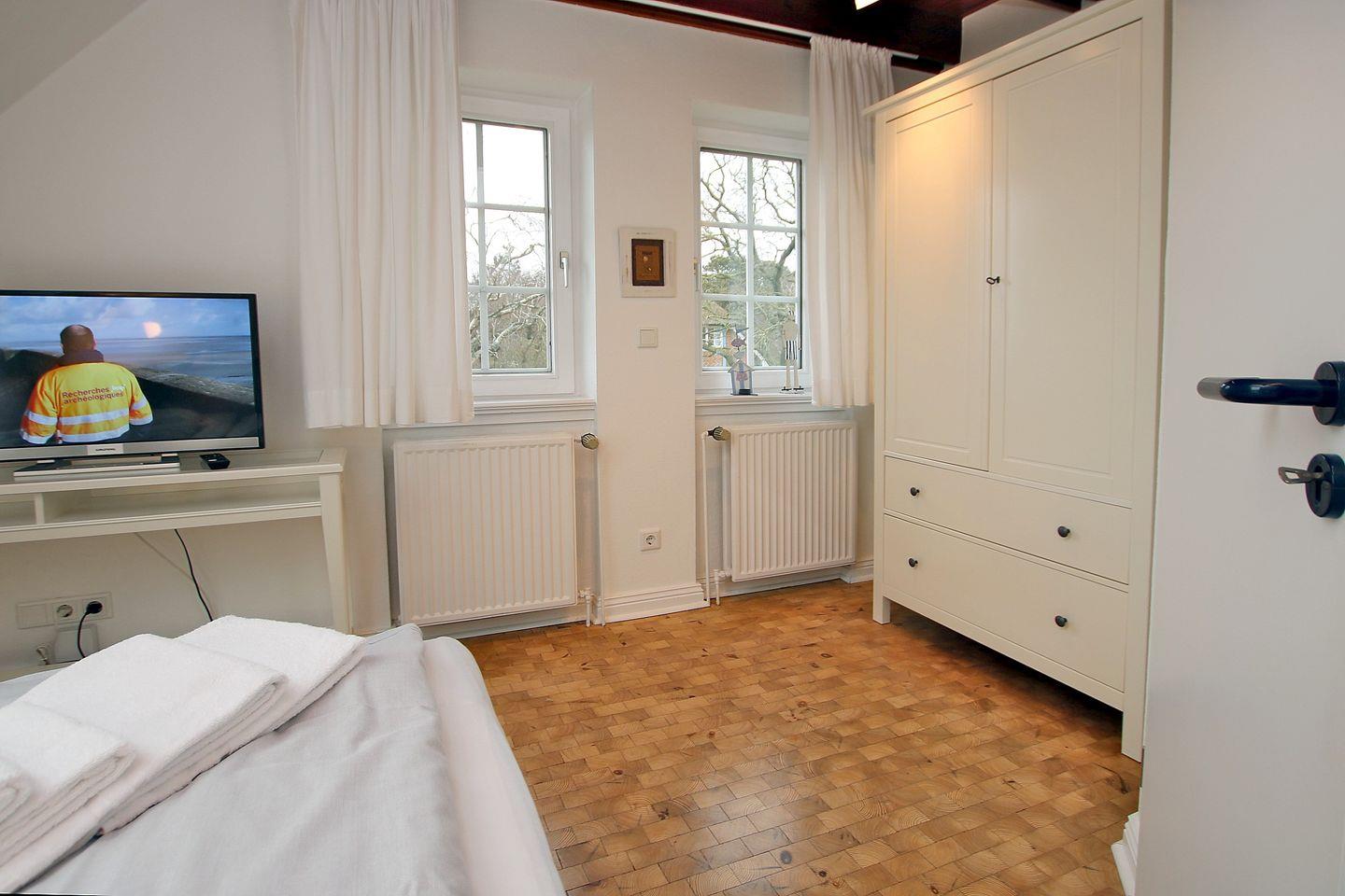 Vom Esstisch schauen Sie auf Strand, die See und den Nationalpark Wattenmeer. Die KÜCHENZEILE mit 2 Plattenherd, Backofen, Mikrowelle lädt zum Kochen ein. Im Badezimmer finden Sie Dusche und WC. Das SCHLAFZIMMER, ebenfalls mit Meerblick, ist ausgestattet, mit einem tollen Doppelbett (1,80 x 2m), Kleiderschrank und zweitem TV- Gerät.