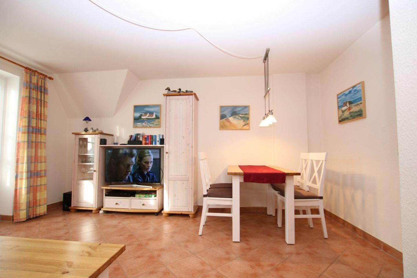 Ferienwohnung in Wyk auf Föhr, Lüttmarsch 13, Whg. Nr. 7 (ca. 39 qm), 2-Zimmer-Nichtraucherwohnung in der 1. Etage mit Südbalkon. WOHNZIMMER: Esstisch mit 4 Stühlen, gemütliche Eckcouch, Südbalkon mit Tisch und 2 Stühlen. Separate Küche mit allen Extras. BAD: Dusche/WC. Vom Flur führt eine Treppe ins Dachgeschoss, dort stehen 2 Einzelbetten (0,90 x 2m) und ein Einbauschrank zur Verfügung.