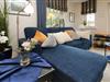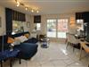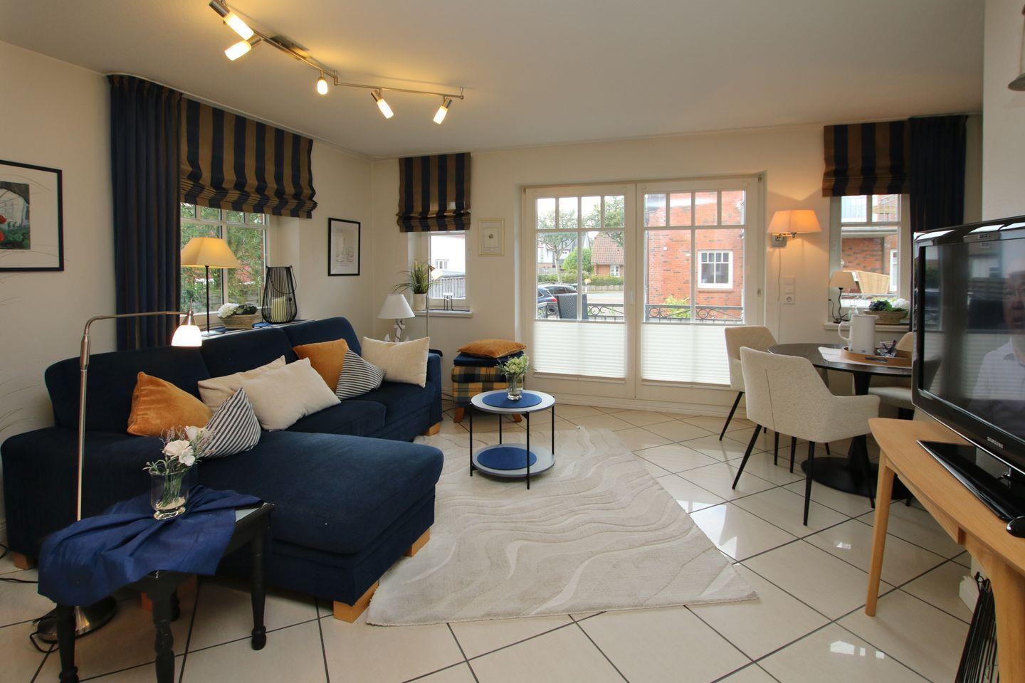- Wohnzimmer mit 3er Sitzecke, Sessel, Hocker, Essplatz und Küchenzeile
