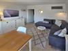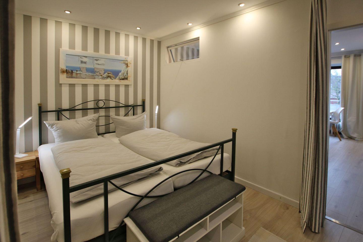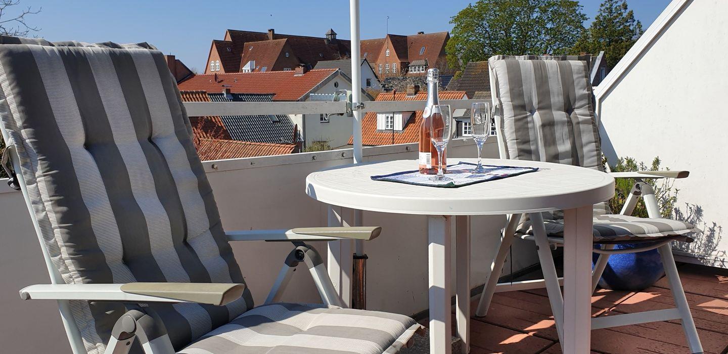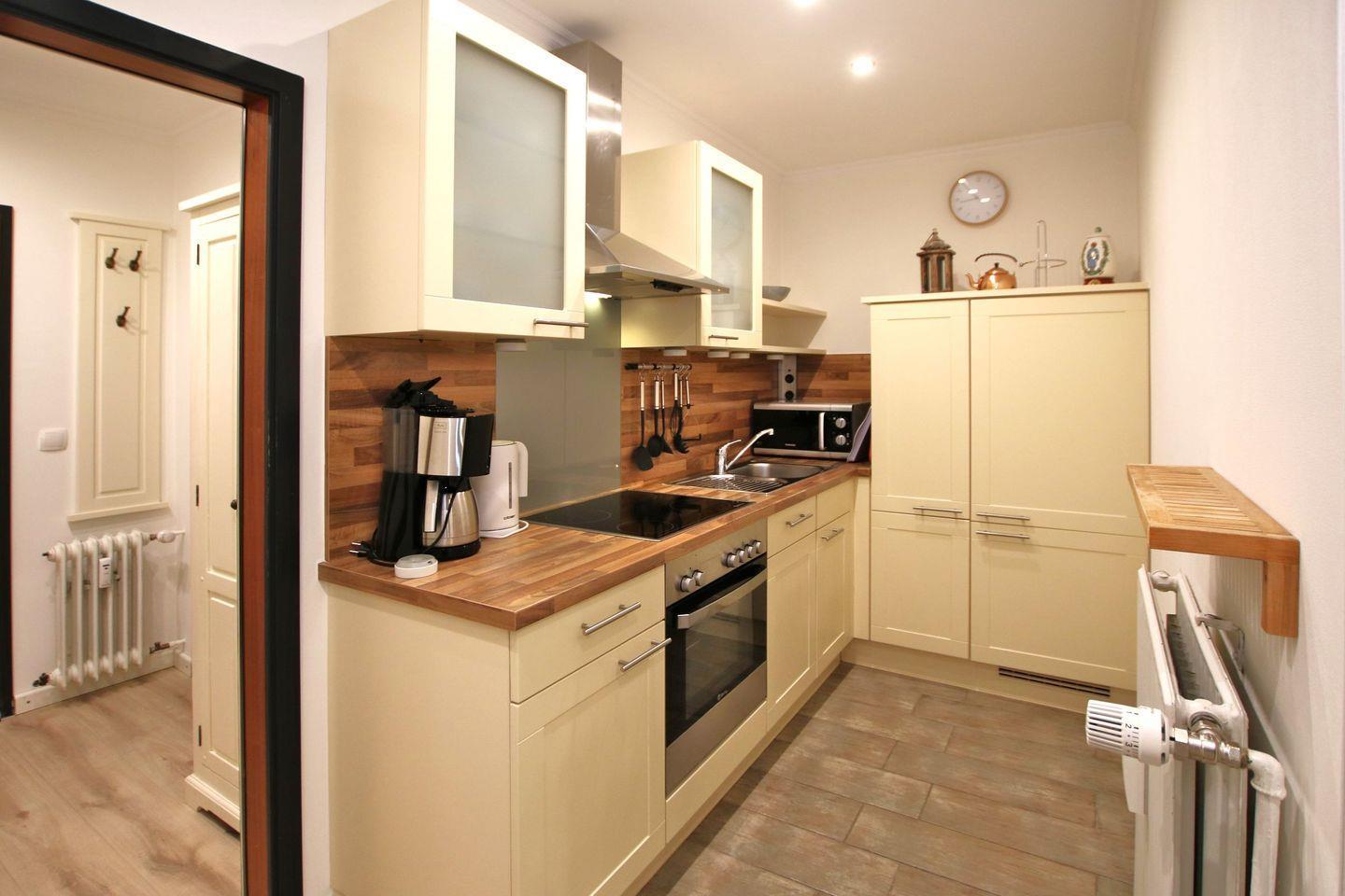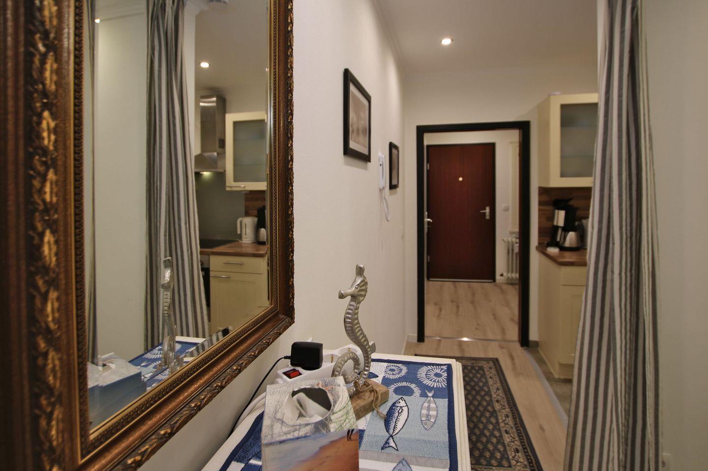 Die Ferienwohnung befindet sich in Wyk auf Föhr, Große Str. 19, Whg. Nr. 5 im 2. OG. Die Nichtraucherwohnung liegt sehr zentral in der Fußgängerzone und nur 150 m vom Strand entfernt. Die modern und liebevoll eingerichtete 2-Zimmerwohnung verfügt über einen großen Südbalkon (10 qm) mit Tisch und Stühlen. Das Wohnzimmer, ausgestattet mit einer Eckgarnitur (als Schlafcouch nutzbar) und einem Esstisch mit drei Stühlen, ist durch große Fensterfronten lichtdurchflutet. Der Schlafbereich mit Doppelbett (1,6 m breit) ist mit einem Vorhang vom Flur abtrennbar, ein Fenster zum Wohnbereich sorgt für Tageslicht und Frischluft. Die Küchenzeile mit Geschirrspüler befindet sich separat. Die Wohnung verfügt über ein Duschbad. WLAN ist vorhanden. Die Bodenbelege bestehen aus Fliesen und Laminat. Ein Parkplatz ist nicht vorhanden. Zum Be- oder Entladen ist es erlaubt, die Fußgängerzone zu befahren.