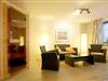 - Wohnzimmer mit 3er Ledercouch, 2 Korbsesseln, Esstisch mit vier Stühlen und 3er Bank