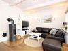 - Helles gemütliches Wohnzimmer mit Ausgang zur großen Holzterrasse, Leder Eck -Couch, Kaminofen, Flat- TV, Radio/CD/DVD