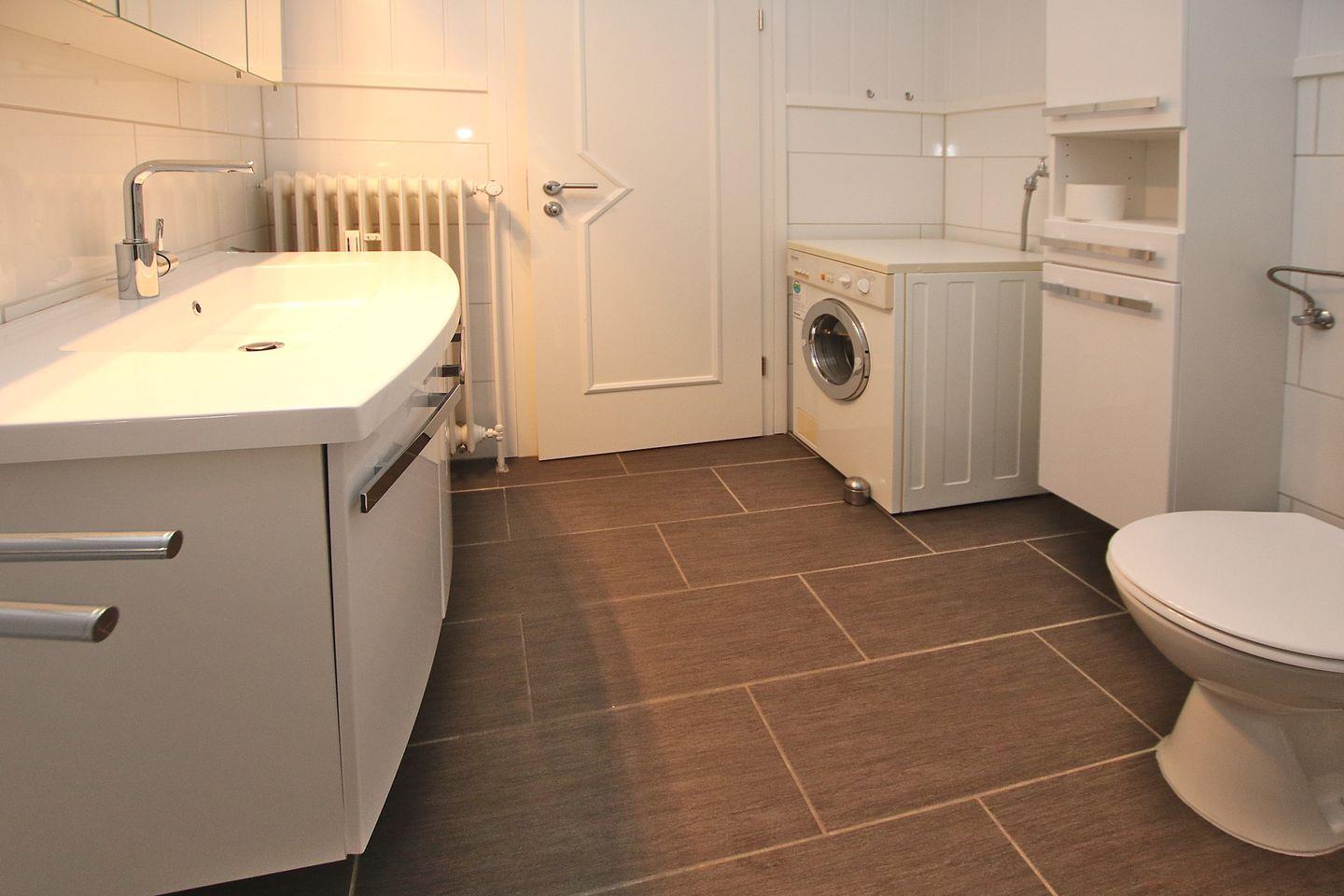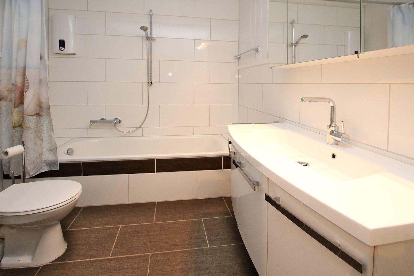 - Badezimmer mit Duschwanne, WC, Waschmaschine