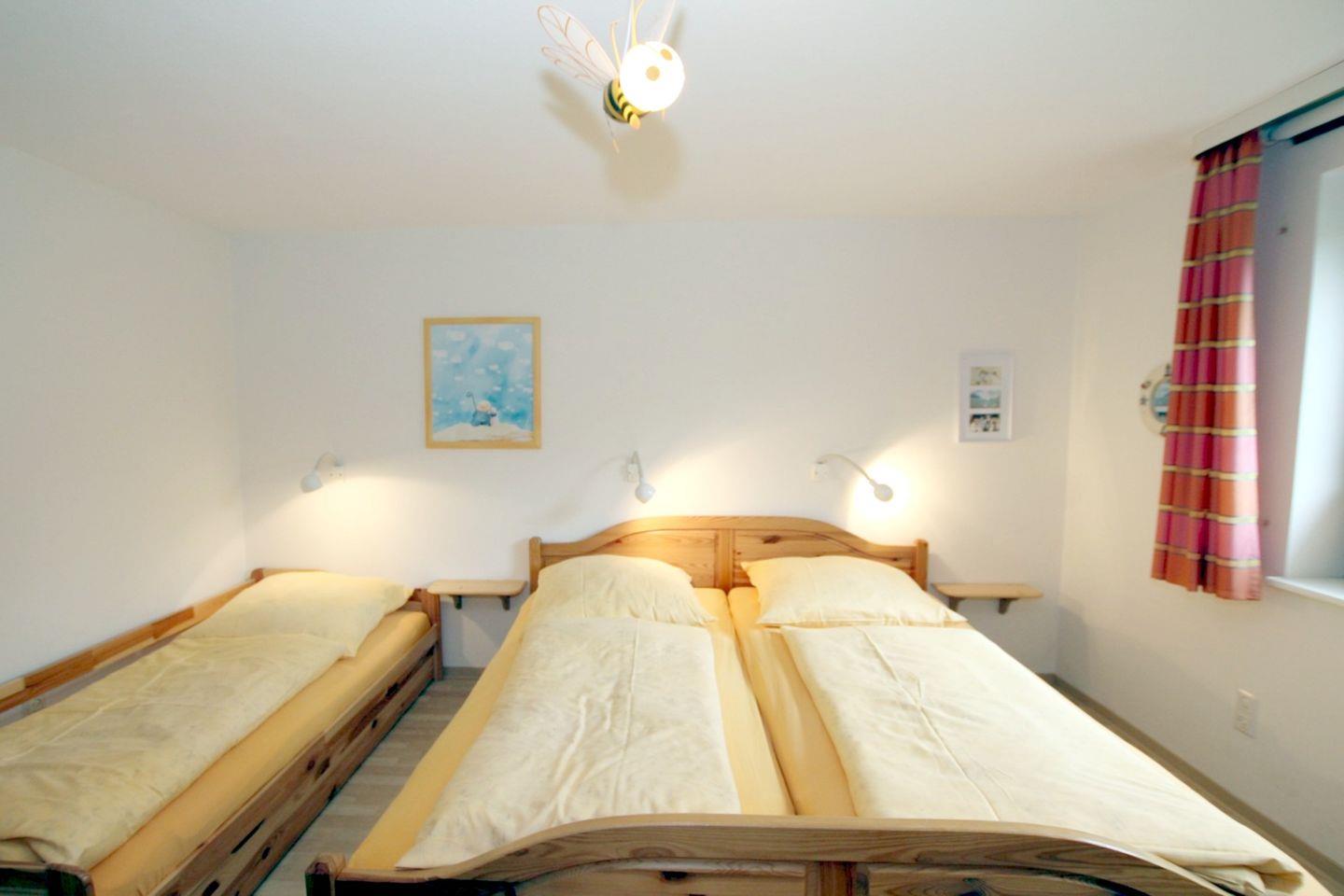 - Schlafzimmer 2 mit Doppelbett, Einzelbett und Wickelkommode