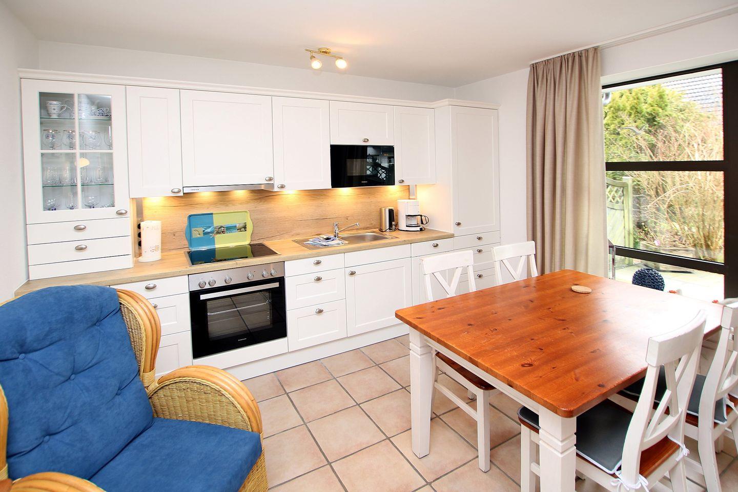 Ferienwohnung in Wyk auf Föhr, Gmelinstr. 28a, Whg. 42 - Südstrand - (ca. 42 qm)2-Zimmerwohnung im Erdgeschoß mit Westterrasse: WOHNZIMMER mit Couch, Couchtisch, Esstisch mit 4 Stühlen und KÜCHENZEILE mit Herd und Kühlschrank mit Eisfach, Geschirrspüler, Backofen und Mikrowelle. FLUR mit eingebautem Kleiderschrank. BAD mit Dusche und WC. SCHLAFZIMMER mit 2 Einzelbetten (0,80x2,00) und Kommode. Fahrradständer u. Parkplatz sind am Haus. Das Haus ist umgeben von einem Naturgrundstück (Wiese). Einkaufsmöglichkeiten in der Nähe. Zum Strand sind es nur wenige Minuten, zum Zentrum, Wellenbad und Kurmittelhaus ca. 30 - 45 Min. Waschmaschine und Trockner auf Münzbasis stehen im Keller des Hauses. AB 2022 keine Haustiere mehr erlaubt.