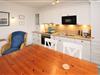 - Wohnzimmer mit Couch (Schlaffunktion) Esstisch mit 4 Stühlen und Küchenzeile