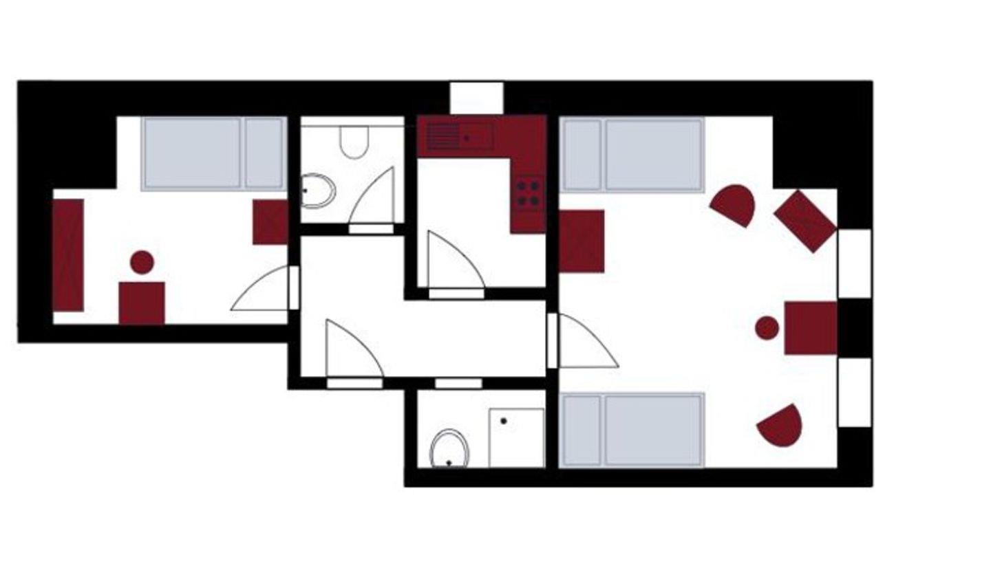 Wohn- / Schlafraum mit 2 Einzelbetten, 2 Sesseln, Essplatz, Flachbild-TV, Radio, Essplatz für bis zu drei Personen. 1 separates Schlafzimmer mit 1 Einzelbett, separate Küche, 1 Duschbad,1 separates WC, kostenfreies W-LAN.