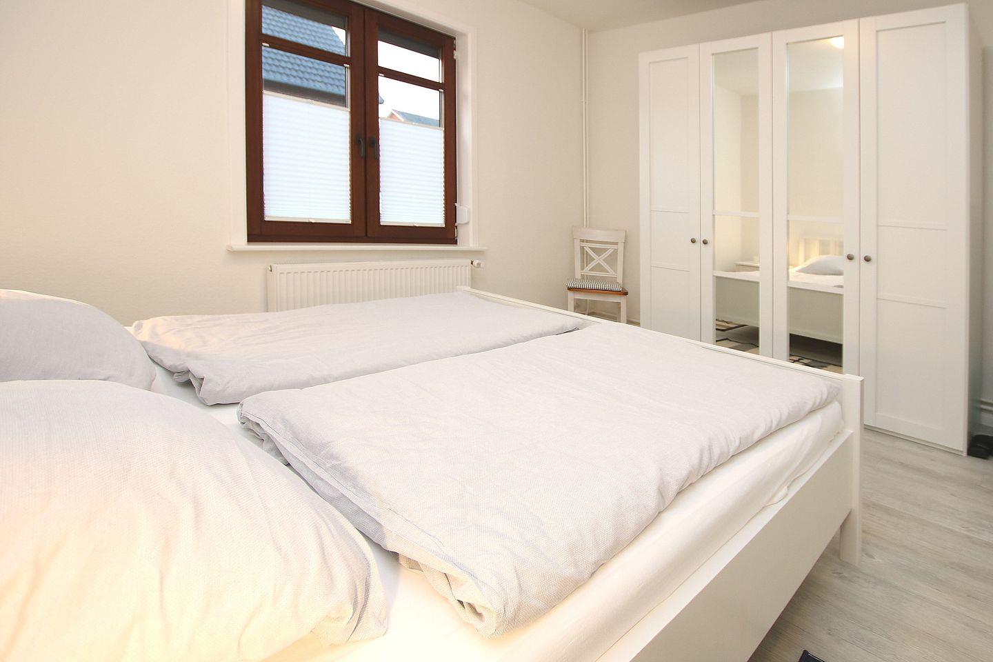 - Schlafzimmer 1 mit Doppelbett (180 x 200cm) und Kleiderschrank