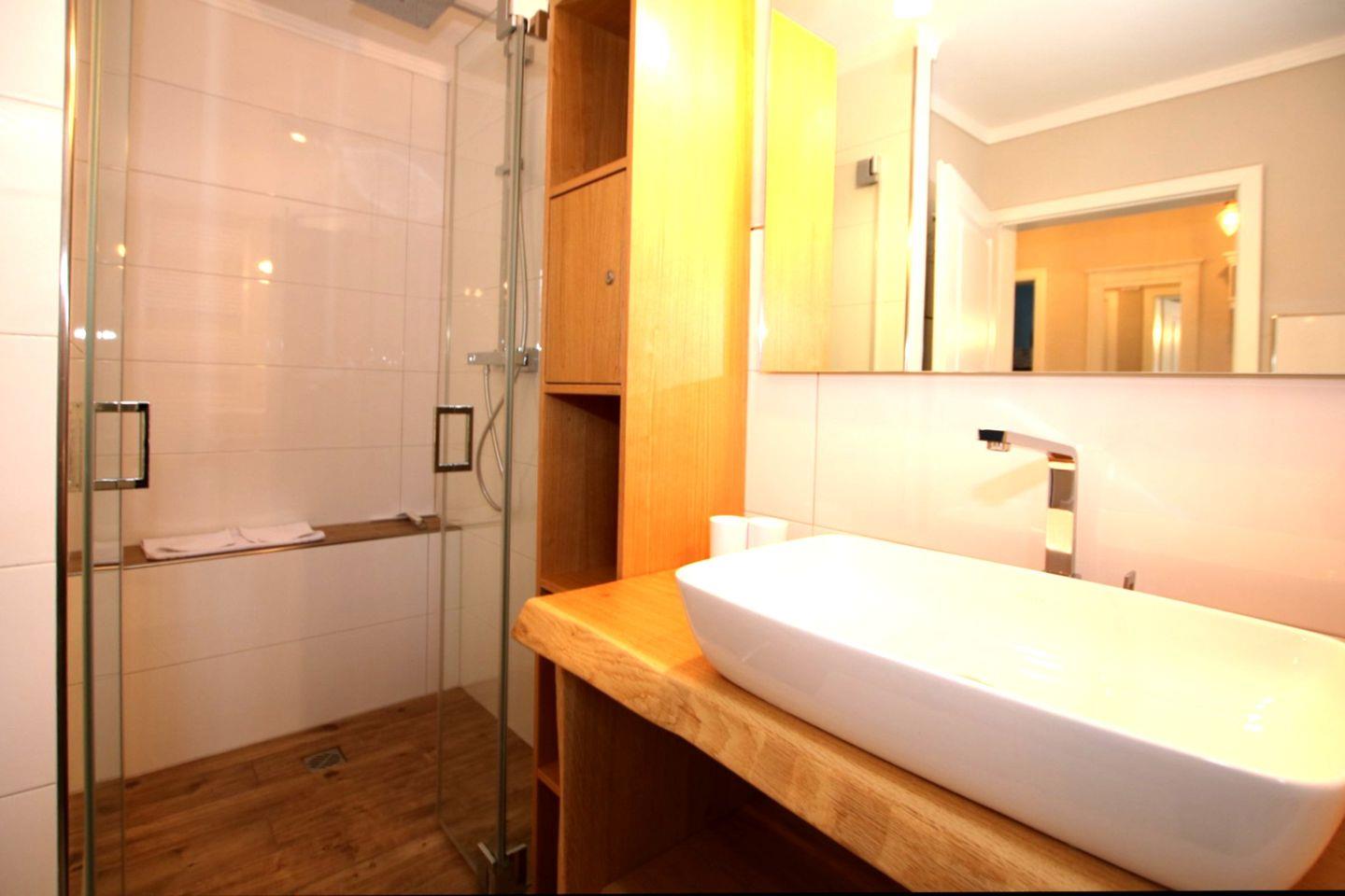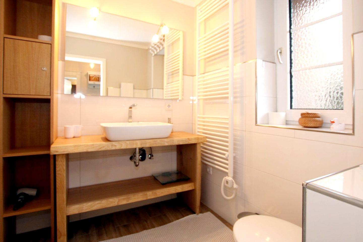 Die Wohnung ist komplett gefliest. Zum Südstrand ca. 400 m und zum Kurmittelhaus und Erlebnisbad und Innenstadt ca. 1200m. Münzwaschmaschine und Trockner im Keller. Gemeinschaftssauna (4 Parteien) im Keller.