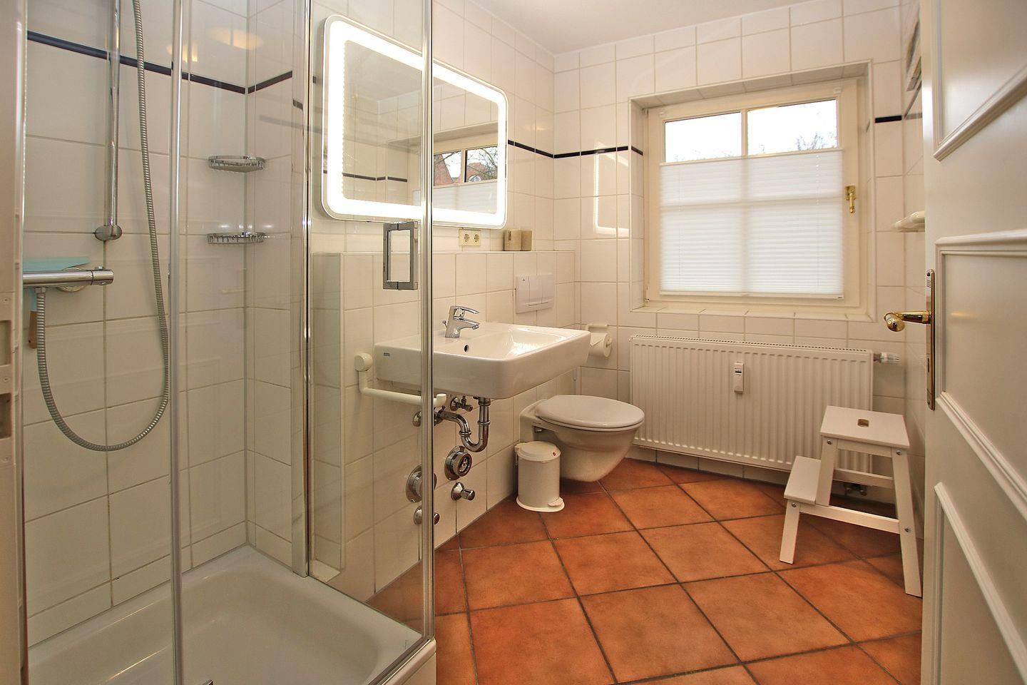 Das freundliche Tageslichtbad verfügt über Dusche und WC.