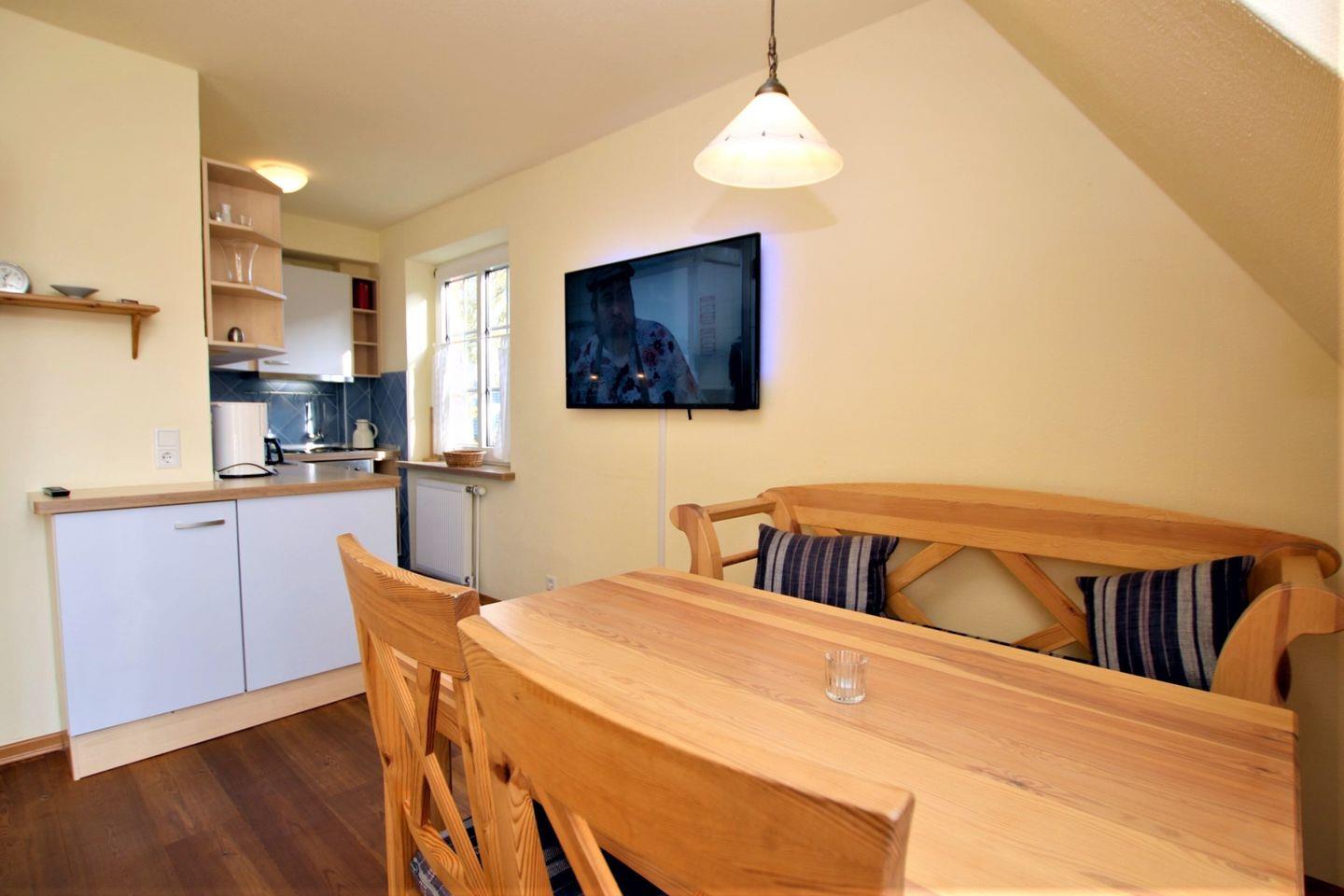 2-Zimmer-Nichtraucherwohnung in der 1. Etage mit Südbalkon. WOHNZIMMER mit gemütlicher Sitzecke, Esstisch und 5 Stühlen, WLAN-Anschluss ist inklusiv. KÜCHENZEILE über Eck mit allem Komfort. SCHLAFZIMMER mit 2 Einzelbetten und Kleiderschrank. FLUR: mit Garderobe und Treppe zum Spitzboden. BAD mit Dusche und WC. Im KELLER stehen Münzwaschmaschine und -trockner zur Verfügung. Zum Strand sind es keine 3 Minuten Fußweg. Einkaufsmöglichkeiten in der Nähe. Zum Zentrum, Wellenbad u. Kurmittelhaus sind es ca. 15 - 20 Minuten Fußweg. Die Wohnung liegt ruhig in zweiter Reihe.