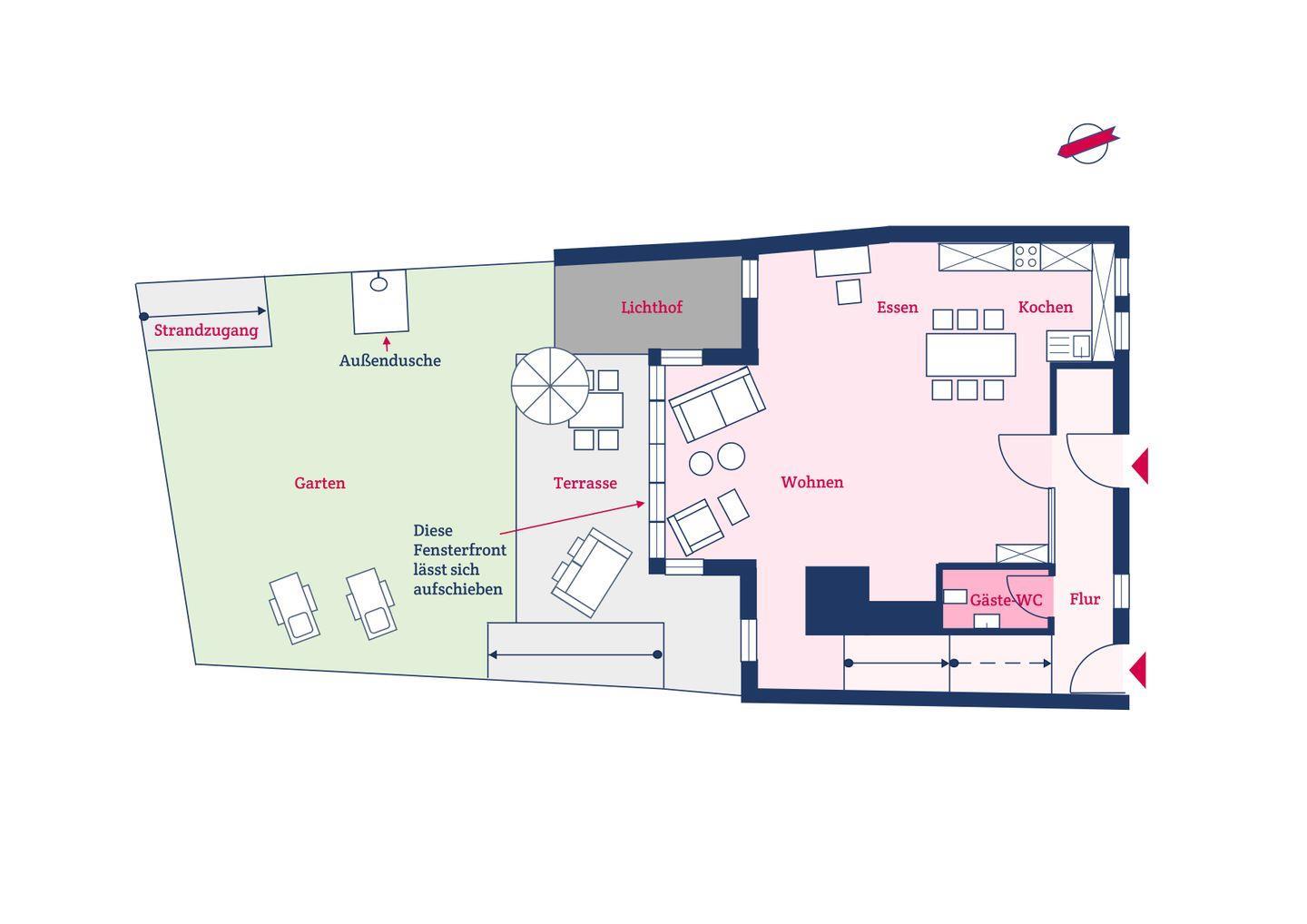 ** Möchten Sie mit 7 oder mehr Personen anreisen? Buchen Sie zusätzlich zum Strandhaus das Strandglück oder das Strandversteck und erhalten Sie für die zusätzlichen Buchungen 20% Nachlass auf die Miete. Der Nachlass gilt nicht für Ihre Buchung des Strandhauses. **