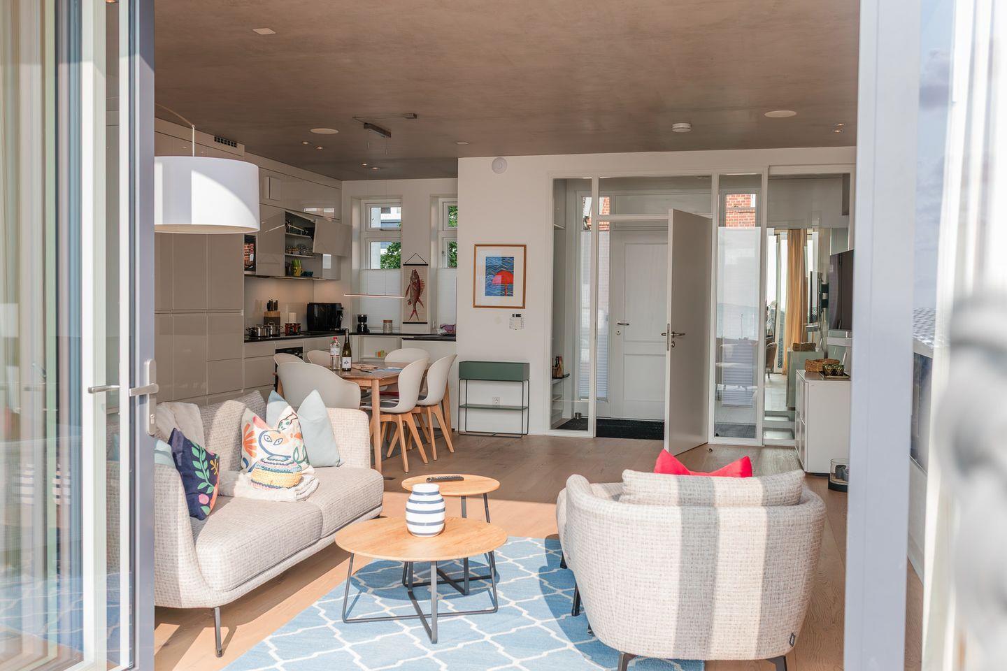 Das Strandhaus liegt in bester Lage direkt am Meer. Durch den Garten kommen Sie über einen eigenen Zugang direkt zum Sandstrand. Das Strandhaus bietet mit drei Schlafzimmern und Bädern Platz für bis zu sechs Personen. In dem 2022 fertiggestellten Architektenhaus verbinden sich moderne Bauweise mit stilvoller Ausstattung. Zur einmaligen Wohnatmosphäre tragen Kunstwerke und liebevoll ausgewählte Einrichtungsgegenstände bei. Zur technischen Ausstattung gehören u.a. ein Sonos-System im Wohnbereich, Smart-TV und WLAN in Haus und Garten.