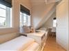 Im Obergeschoss befinden sich zwei der drei Schlafzimmer - eines mit einem Doppelbett und eines mit zwei Einzelbetten - sowie eines der beiden Duschbäder. Beide Schlafzimmer sind jeweils mit einem Flachbild-TV versehen.