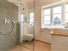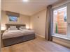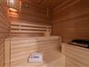 Im Souterrain befinden sich das dritte Schlafzimmer und das zweite Duschbad, die hauseigene Sauna sowie ein Hauswirtschaftsraum mit Waschmaschine und Trockner. Das Schlafzimmer verfügt über ein Doppelbett und ein Panoramafenster.