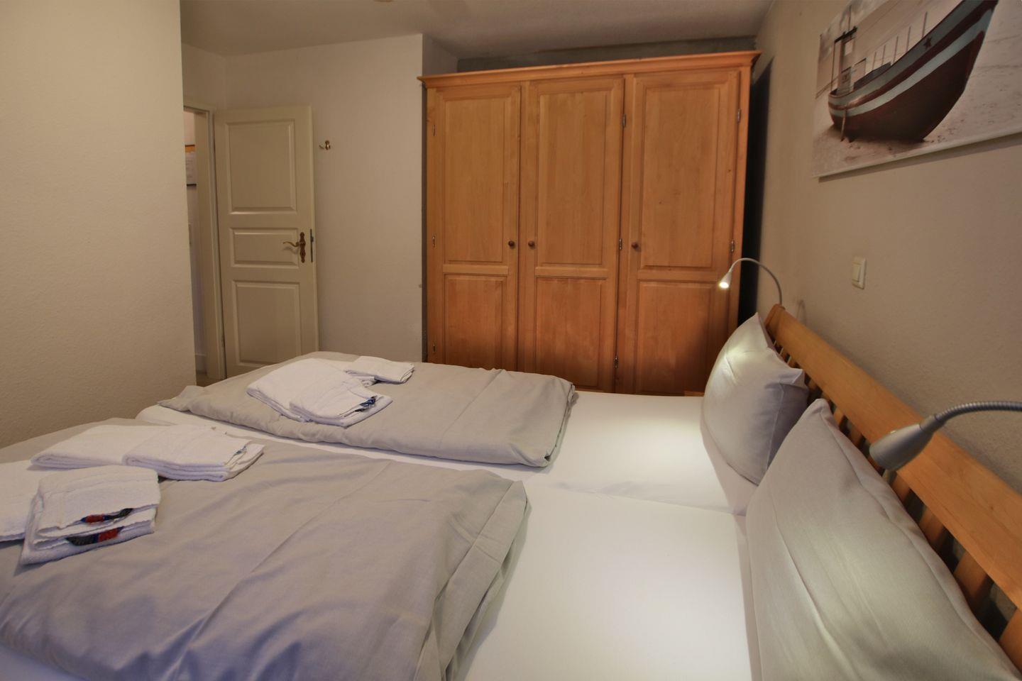 - Schlafzimmer mit Doppelbett (180 x 200 cm) und Kleiderschrank