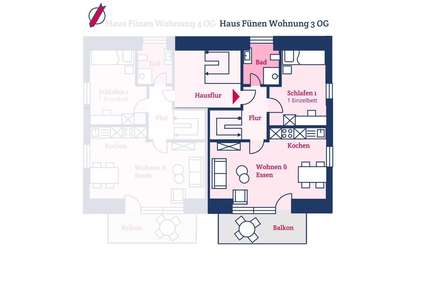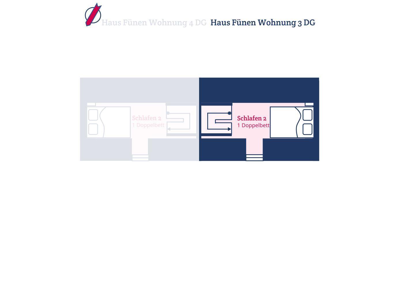 Die zur Meerseite gelegene Ferienwohnung 3 im Haus Fünen am Südstrand verfügt über 2 Schlafzimmer und 1 Duschbad und bietet somit komfortabel Platz für bis zu 5 Personen zuzüglich einer Kleinkinderaufbettung.