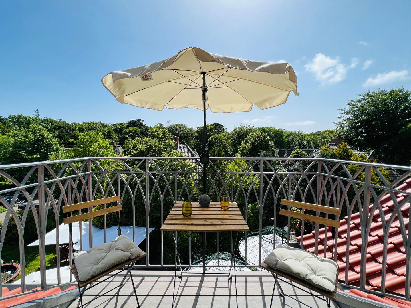 Exklusive Ferienwohnung in Strandnähe mit hochwertiger und nachhaltiger Einrichtung sowie eigenem Balkon mit Blick in die Natur.
