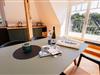 Die Ferienwohnung ist vollständig im Dachgeschoss gelegen und verfügt über einen großzügigen Wohn- und Essbereich mit offener Küche, ein Schlafzimmer mit Doppelbett und Vollbad en Suite, ein Schlafzimmer mit zwei Einzelbetten, sowie ein separates Duschbad. Über den Essbereich gelangen Sie direkt auf den eigenen Balkon mit Blick in die Natur.