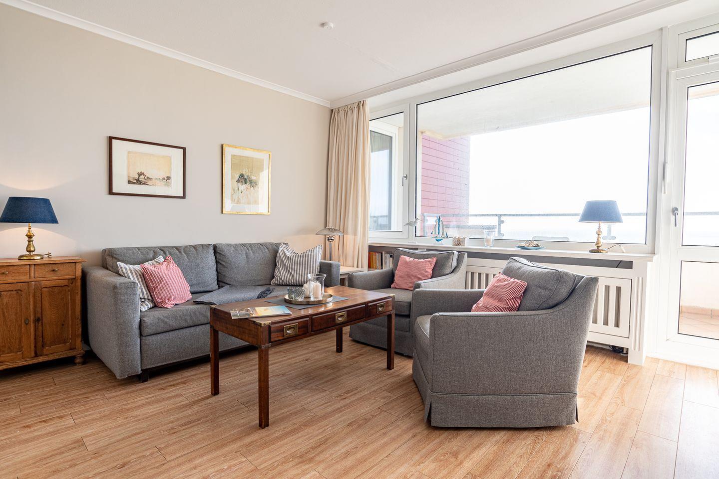 Zu den Highlights der Ferienunterkunft zählen wir u. a. die Nähe zum beliebten Wyker Südstrand, den eigenen Balkon mit Blick auf die Nordsee, sowie den Gemeinschaftsbereich mit Sauna und Schwimmbad.