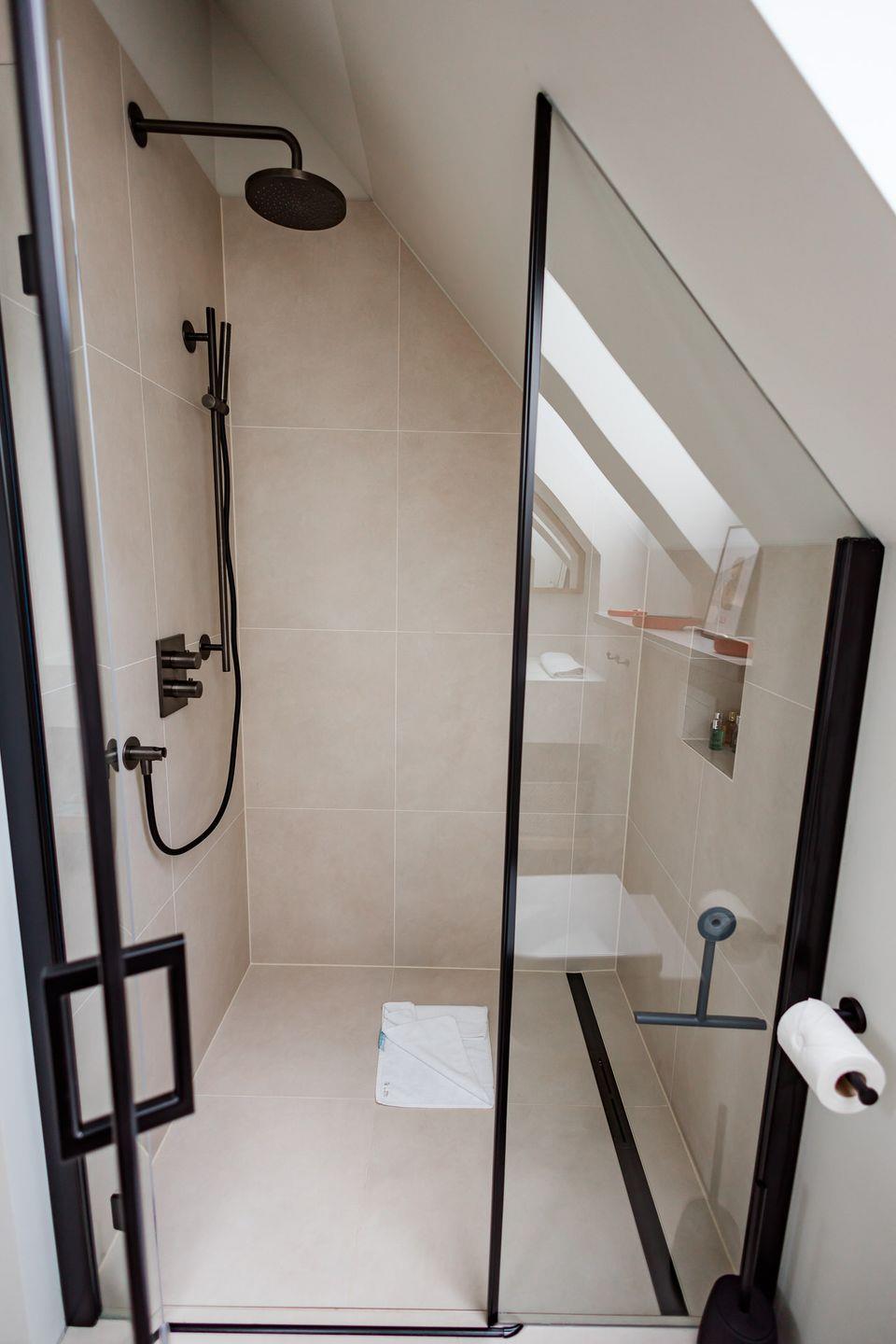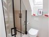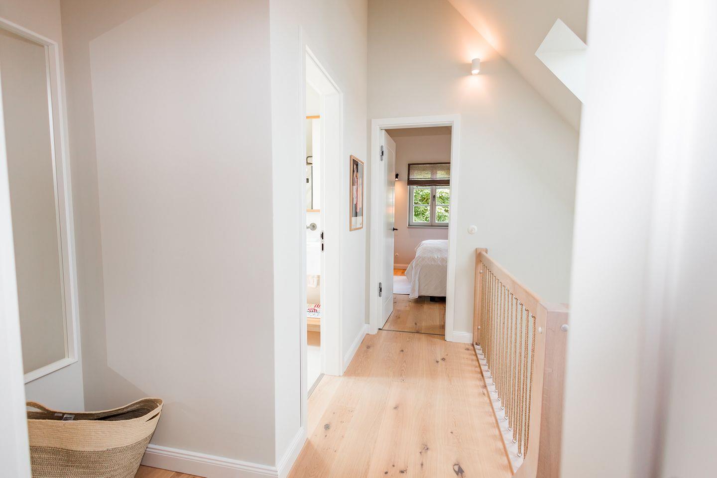 Im Obergeschoss sind die drei Schlafzimmer - eines davon mit Doppelbett und Duschbad en Suite - sowie ein zusätzliches Duschbad gelegen. Die beiden weiteren Schlafzimmer verfügen jeweils über ein Etagenbett (Breite 1,40 m).