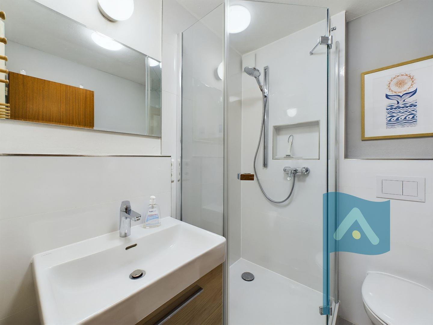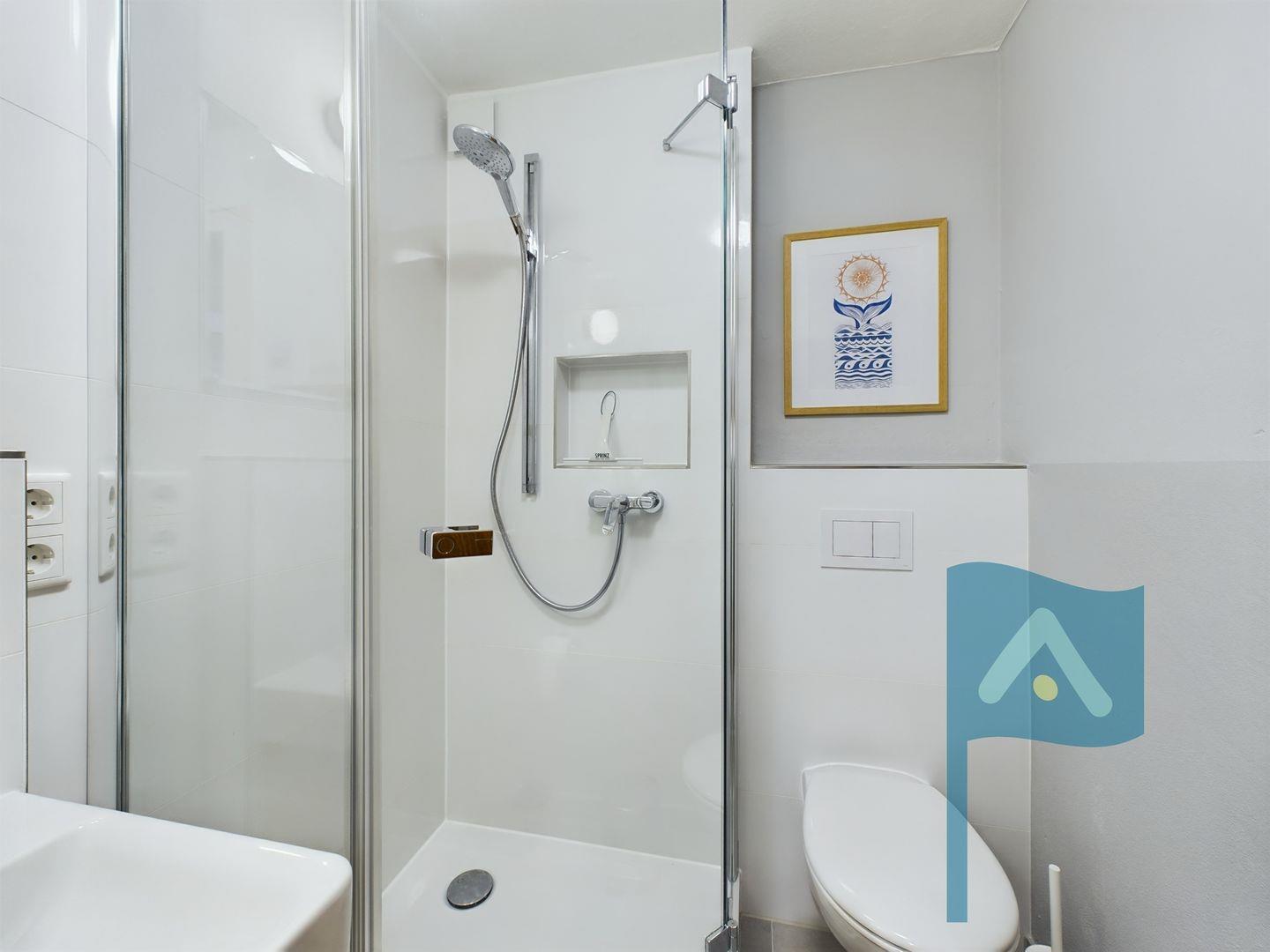 Das Badezimmer ist modern und lichtdurchflutet und bietet alles, was Sie für Ihre tägliche Pflege brauchen. Genießen Sie entspannende Duschen in der bodengleichen Dusche und nutzen Sie den Haartrockner für Ihr Styling während Ihres Aufenthalts. Handtücher sind für Sie bereitgelegt, sodass Sie sich um nichts kümmern müssen.