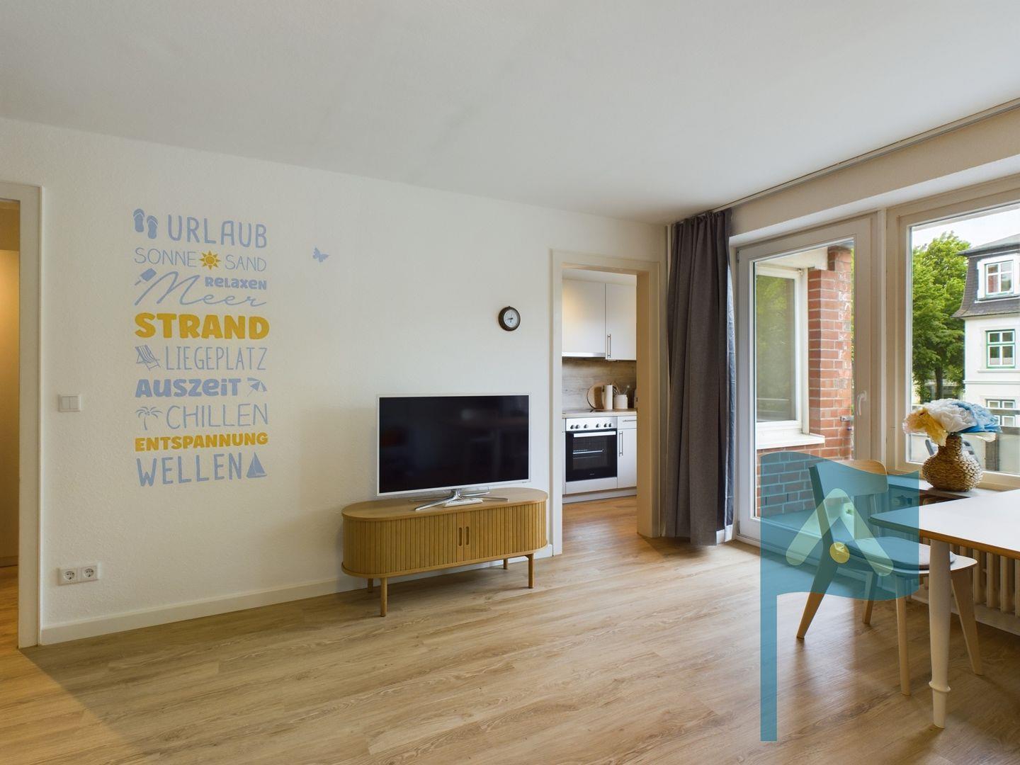 Betreten Sie die Ferienwohnung und lassen Sie sich von ihrem hellen, einladenden Ambiente verzaubern. Der Wohn- und Schlafbereich ist geschmackvoll eingerichtet und verfügt über einen komfortablen Schlafbereich (160*200) sowie eine Sofaecke, die zum Entspannen einlädt. Genießen Sie die Zeit zusammen, während Sie Ihren Lieblingsfilm auf dem Fernseher anschauen oder sich in ein gutes Buch vertiefen. Der Einrichtung ist die Allergikerfreundlichkeit besonders wichtig, sodass Sie sich hier rundum wohlfühlen können.