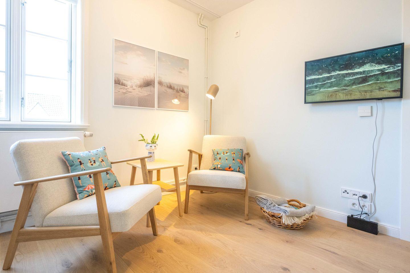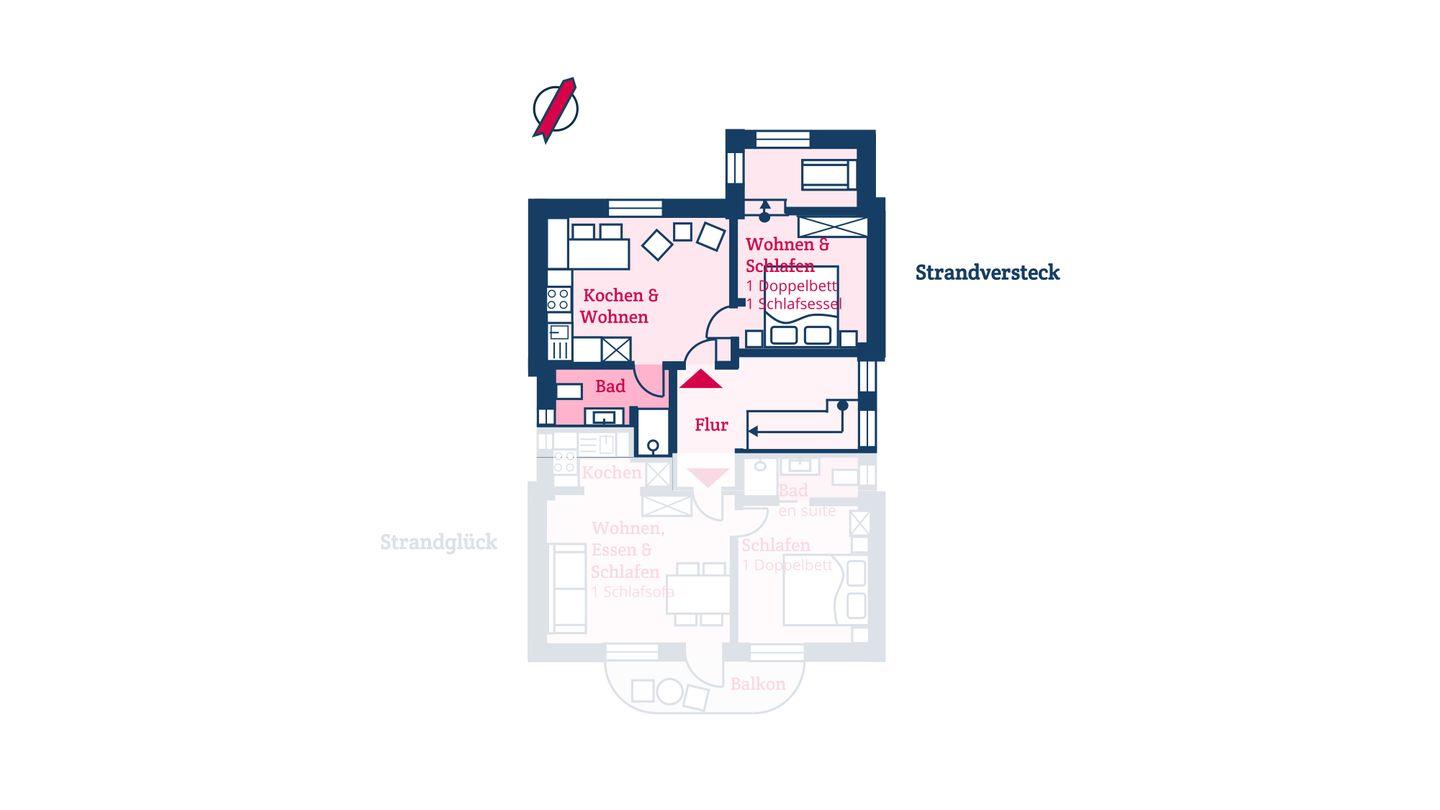 Die moderne Ferienwohnung Strandversteck im alten Kapitänshaus wurde im Jahr 2024 aufwendig renoviert und verfügt über 1 Schlafzimmer und 1 Bad und bietet somit komfortabel Platz für bis zu 2 Erwachsene zuzüglich einer Kleinkinderaufbettung.