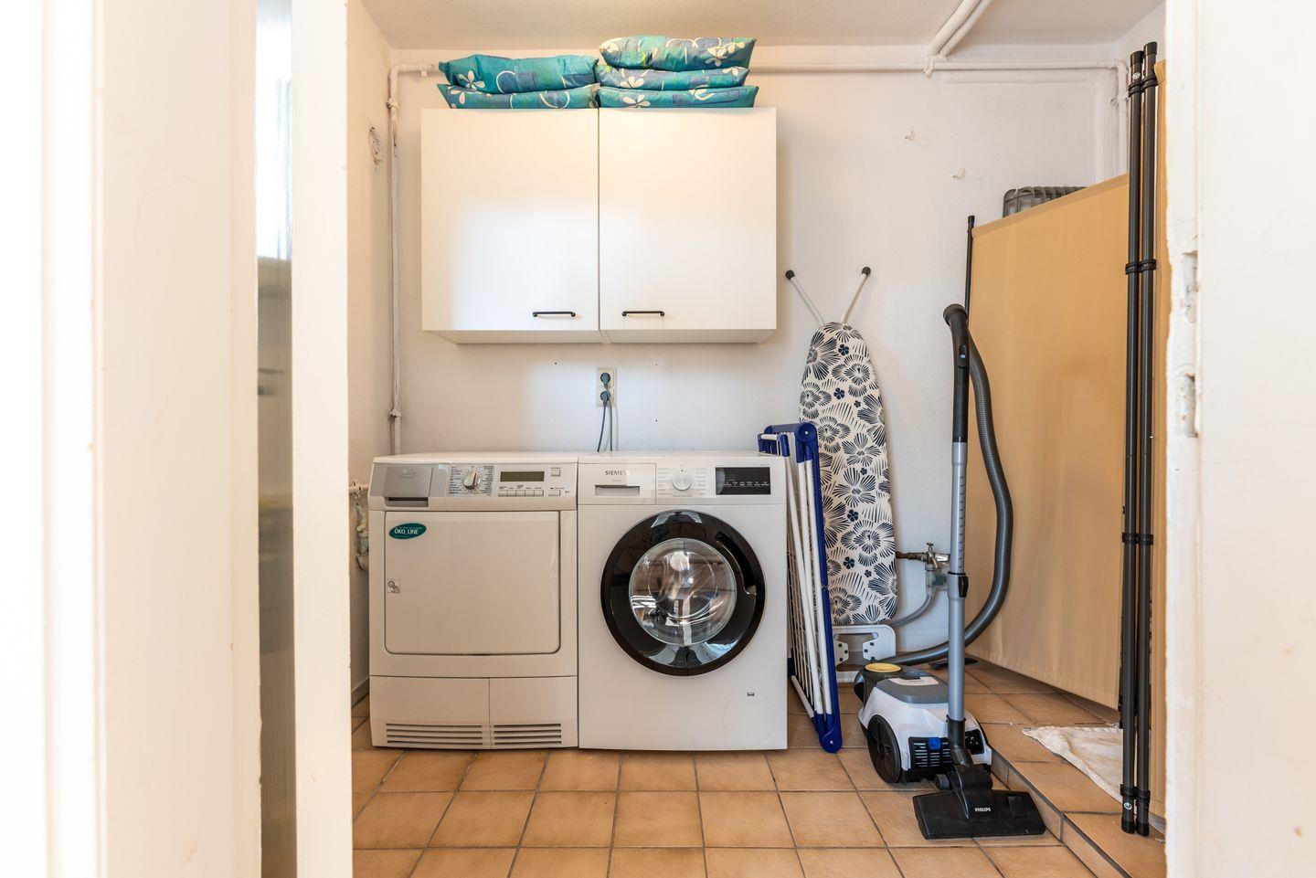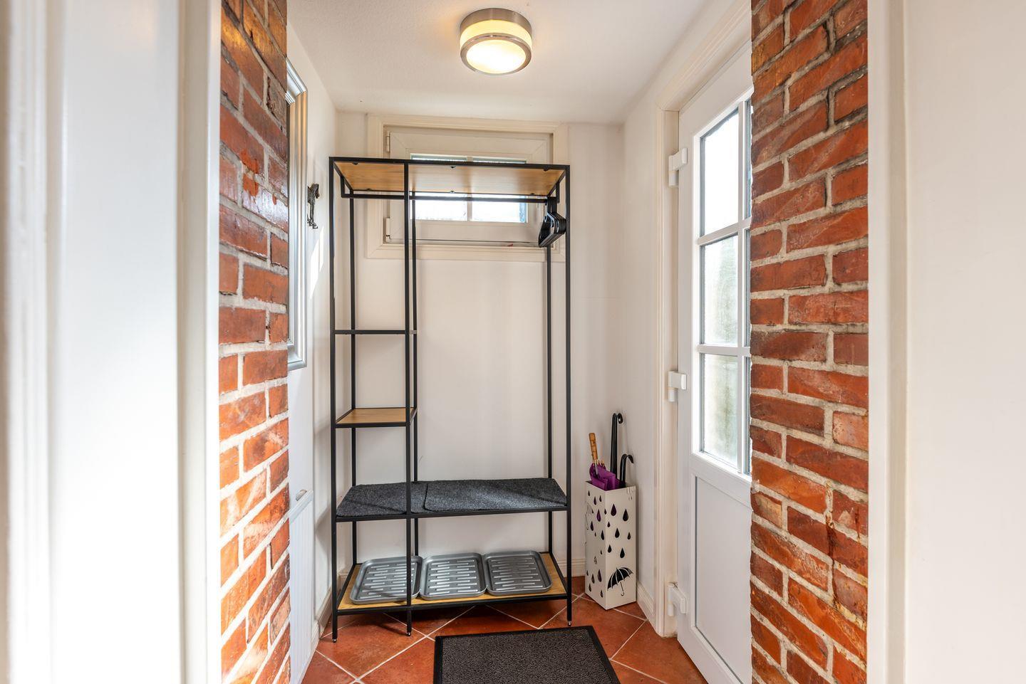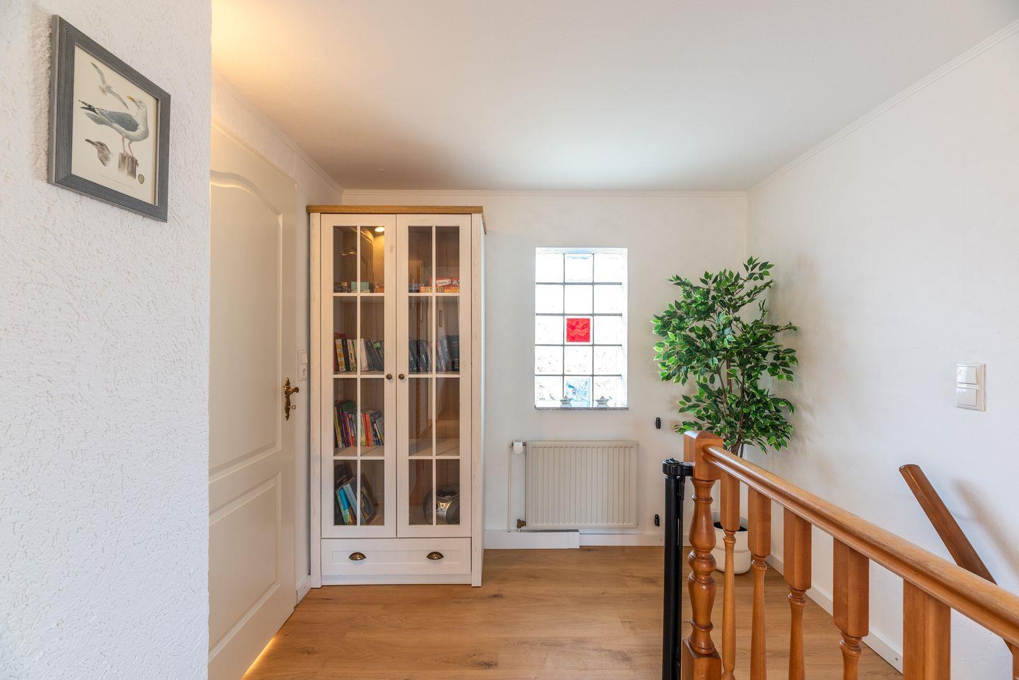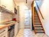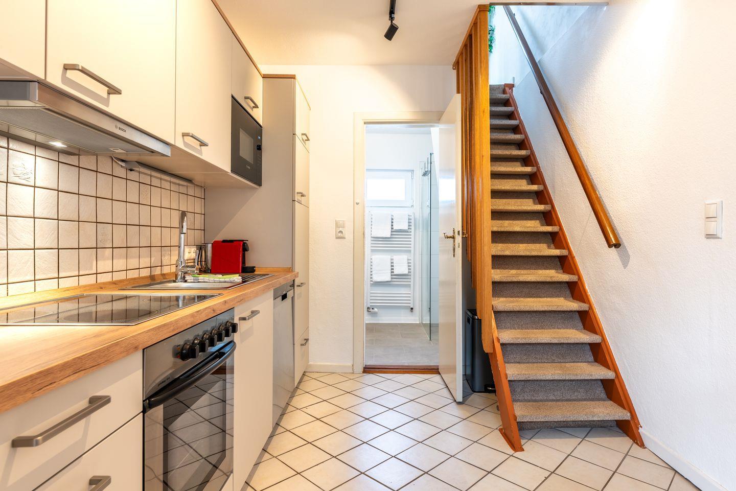 Über den Flur gelangen Sie in das Wohnzimmer sowie in den Hauswirtschaftsraum mit Waschmaschine. Zudem führen die Räume zur Küche und zum Duschbad mit WC. Bitte beachten Sie, dass die Treppe etwas steil ist und schmale Stufen aufweist.