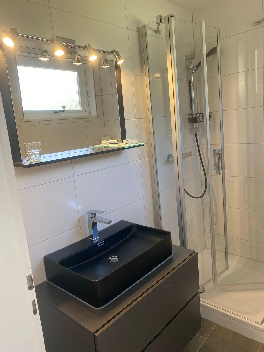 Das Haus bietet Platz für bis zu vier Personen und besteht aus zwei gemütlichen Schlafzimmern (ausgestattet mit einem Doppelbett 180*200 cm und einem Einzelbett 90*200cm), die ausreichend Schlafmöglichkeiten bieten. Das stilvoll eingerichtete Wohnzimmer verfügt über eine bequeme Sofaecke, einen Essbereich und ist mit einem Fernseher, Radio und WLAN ausgestattet. Die offene Küche, die zum Wohnzimmer hin ausgerichtet ist, enthält neben einem Herd, Kühlschrank und Mikrowelle auch alle notwendigen Küchenutensilien. Darüber hinaus sorgt die zentrale Heizungsanlage dafür, dass Sie es auch in den kühleren Monaten angenehm warm haben.