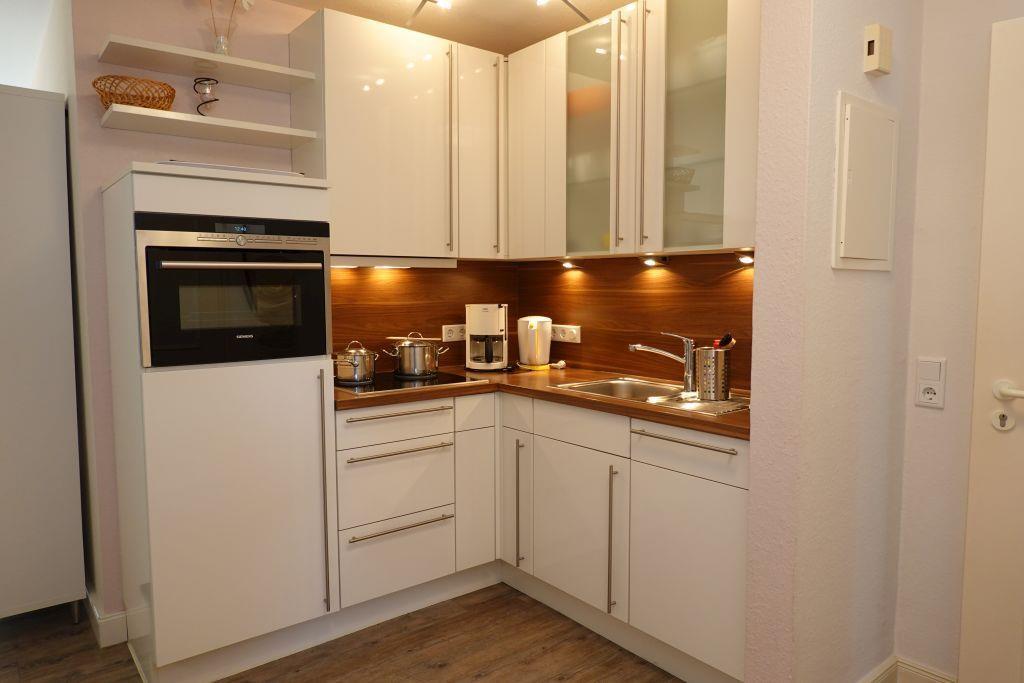 Das Herzstück der Wohnung ist der einladende Wohnbereich, der offen zur voll ausgestatteten, modernen Küche gestaltet ist. Hier finden Sie alles, was Sie für die Zubereitung kulinarischer Köstlichkeiten benötigen: einen Cerankochfeldherd, einen Backofen, eine Spülmaschine und sogar eine Kaffeemaschine für Ihre morgendlichen Genussmomente. Genießen Sie Ihre Mahlzeiten in der gemütlichen Essecke, die Platz für die ganze Familie bietet.