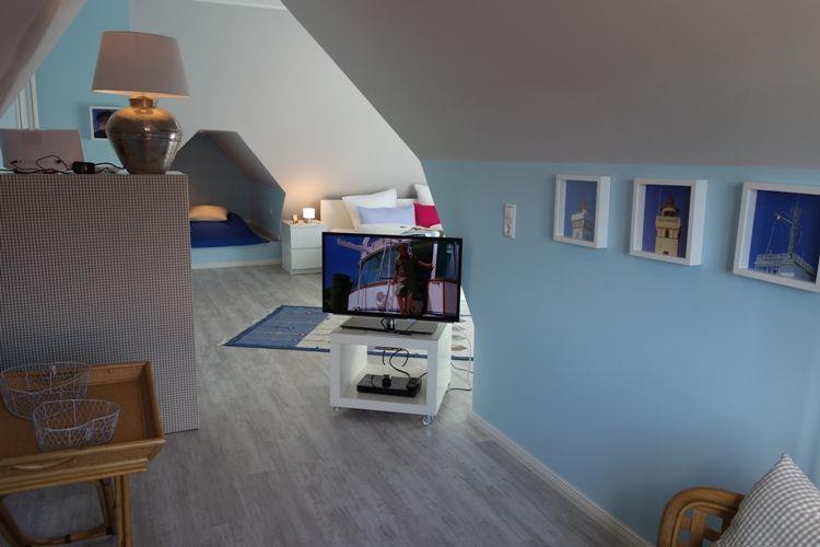 Zu den Highlights des Penthouse gehört der eigene Balkon mit Gartenmöbeln, der zum Verweilen und zum Landschaftsblick einlädt. Für Mobilität und Flexibilität sorgt ein privater Parkplatz direkt an der Unterkunft. Die Nutzung eines Autos ist nicht zwingend erforderlich, da sowohl der öffentliche Nahverkehr (700 m), als auch Einkaufsmöglichkeiten (1200 m), Restaurants (1200 m), der Sandstrand (1200 m) und das Stadtzentrum von Wyk (1500 m) bequem erreichbar sind. Auch Golfplatz, Arzt, Krankenhaus oder Bank und Geldautomat befinden sich in unmittelbarer Nähe.