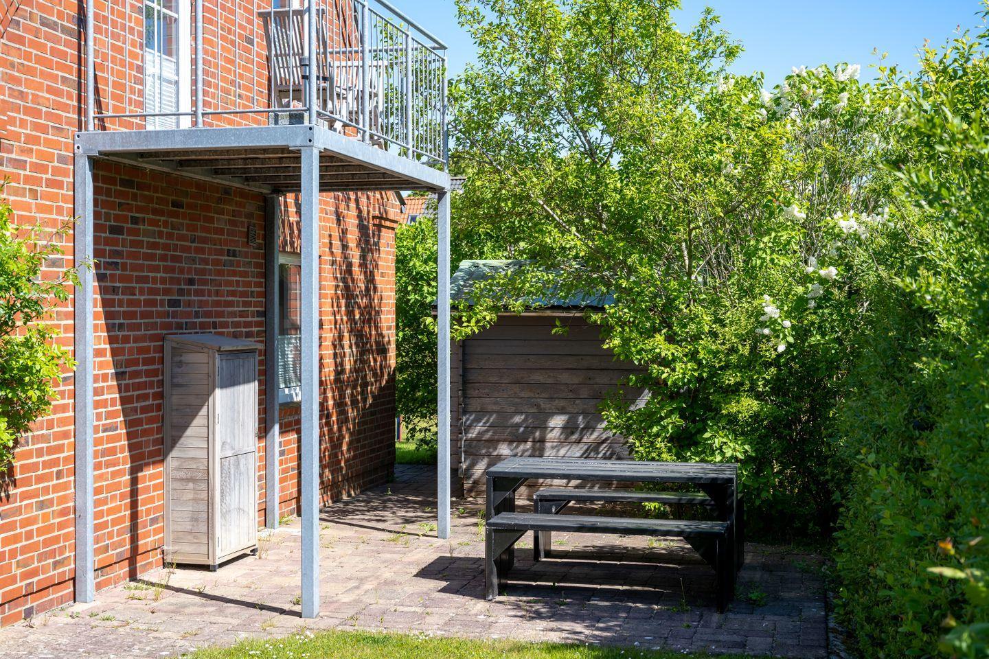 Entspannen Sie auf der Terrasse im eigenem Gartenabschnitt. Eine Unterstellmöglichkeit für Ihre Fahrräder und ein eigener PKW-Stellplatz runden das Angebot ab.