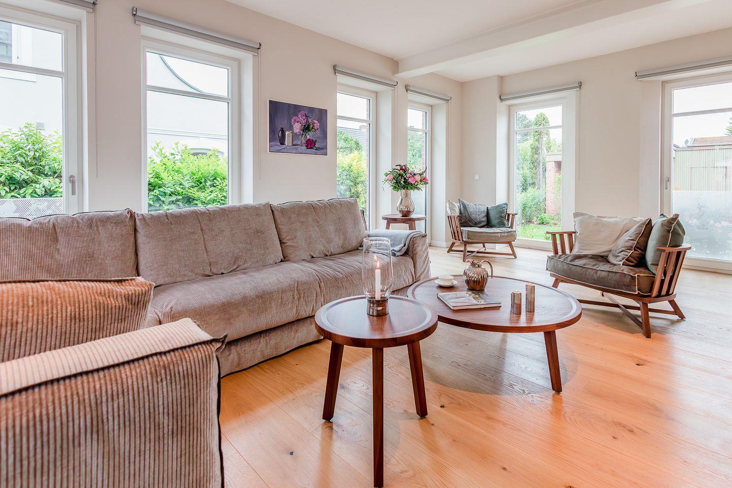 Die Ferienwohnung Beeke steht für Wohnen auf höchstem Niveau. Sie bietet höchsten Komfort mit großzügigen 3 Schlafzimmern, 3 Bädern en Suite sowie einem zusätzlichen Gäste-WC – ideal für bis zu 6 Personen, zzgl. einer Kleinkinderaufbettung. Auch bis zu zwei Hunde sind herzlich willkommen.