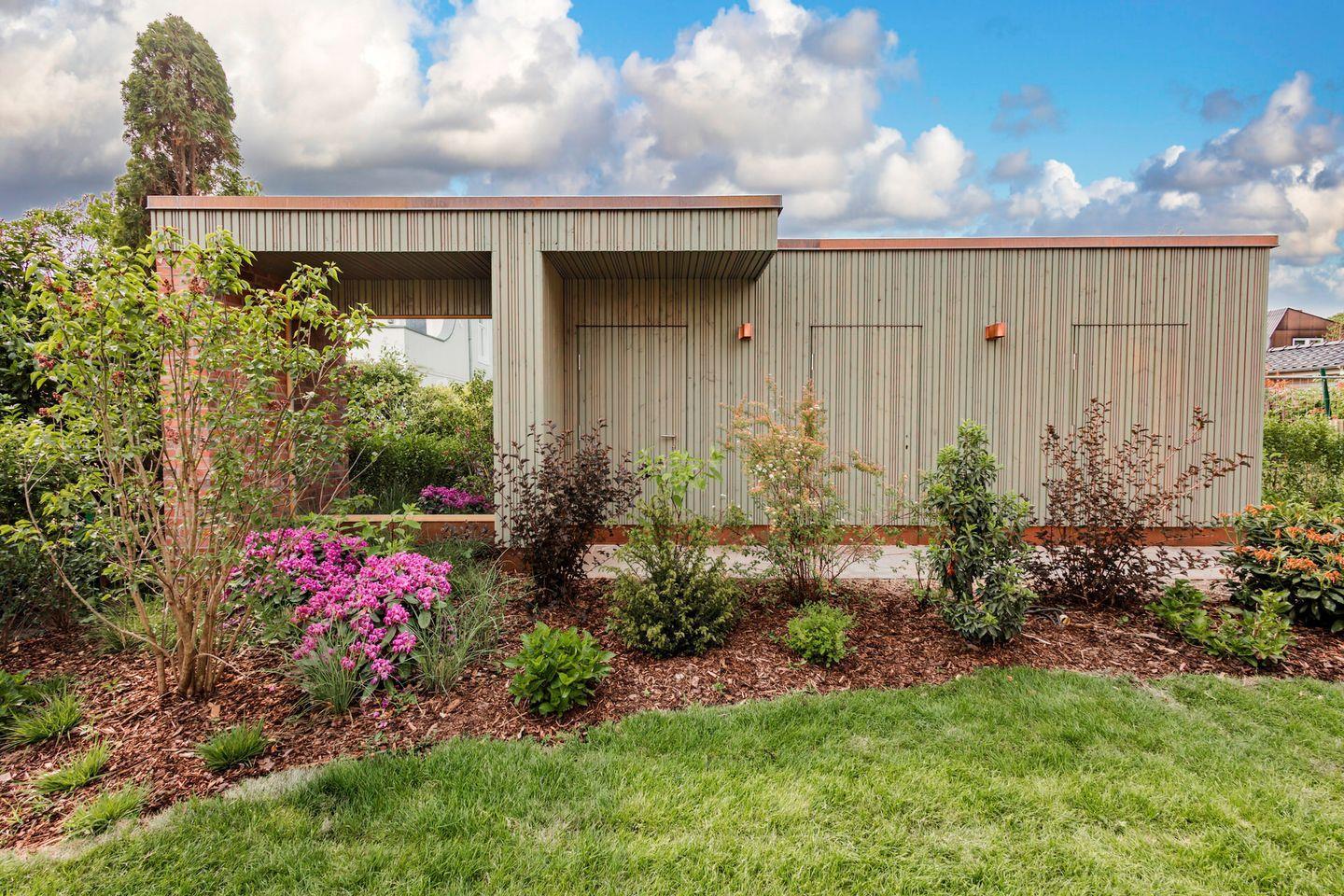 Die stilvolle Innenausstattung trifft auf eine ebenso beeindruckende Außengestaltung – zeitlose Ästhetik, klare Linien und ein Höchstmaß an Qualität prägen das gesamte Anwesen. Die Gartenanlage bietet Ihren Kindern Platz zum Toben - und für Sie zum Verweilen und Ausspannen. Das separate Saunahaus mit Ruheraum setzt ein weiteres Ausrufezeichen in Sachen Erholung. Für Fahrräder steht ein abschließbarer Bereich zur Verfügung, und ein eigener PKW-Stellplatz rundet das hochwertige Gesamtangebot ab.