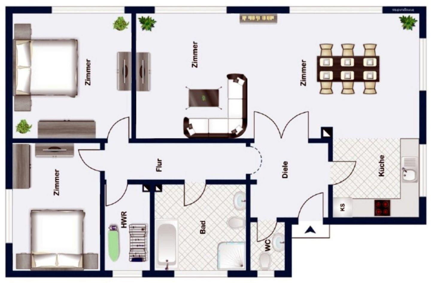 Herzlich Willkommen Wyk auf Föhr. Der freistehende Bungalow auf 750 qm Grundstück, mit Terrasse und großem Garten liegt nahe am Südstrand in der Waldstraße. Die Südterrasse lädt zum Grillen und Verweilen ein. Über 125 qm erstrecken sich die hellen Zimmer in diesem Nichtraucher-Haus. Großzügig und gemütlich eingerichtet hat man hier die Möglichkeit einen entspannten und ruhigen Urlaub zu verbringen. Im WOHN-/ESSBEREICH relaxen Sie auf einer sehr gemütlichen Sitzecke, SMART-TV, Soundbar und HiFi-Anlage lassen keine Wünsche offen. Der Essbereich verfügt über einen großzügigen Tisch mit 4 Stühlen. Für gemütliche Stunden in der kalten Jahreszeit steht ein Kaminofen bereit. Die offene Küche ist komplett ausgestattet, ein zusätzlicher Vorrats-/Abstellraum mit Waschmaschine, Trockner und Mini-Gefrierschrank steht zur Verfügung. Das SCHLAFZIMMER 1 ist mit einem Doppelbett (1,80 X 2 m), einer Kommode und einem 4-türigen Kleiderschrank eingerichtet. Das BADEZIMMER ist gut ausgestattet mit bodenebener Dusche, Eck-Badewanne, WC und genügend Stauraum. Das SCHLAFZIMMER 2 ist mit einem Doppelbett (160 x 2,00 m), einem Schrank (2 Türen, 2 Schubladen) und SMART-TV mit 55 Zoll eingerichtet. Zusätzlich verfügt die Wohnung über ein Gäste-WC.