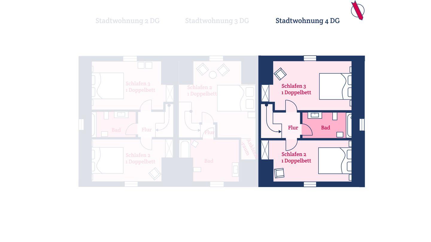 Die Wohnung 4 liegt in der 1. Etage rechts des Hauses Stadtwohnungen 10A. Sie verfügt über ein großzügiges Wohn / Esszimmer mit einer Küchenzeile mit Einbauküche, 3 separate Schlafräume, 2 Bäder und einen Süd-Balkon. Zudem stehen 8 videoüberwachte PKW- Stellplätze für 9 Stadtwohnungen direkt am Haus zur Verfügung. Die Stadtwohnungen liegen zentral aber dennoch nur 200 m vom Strand entfernt.