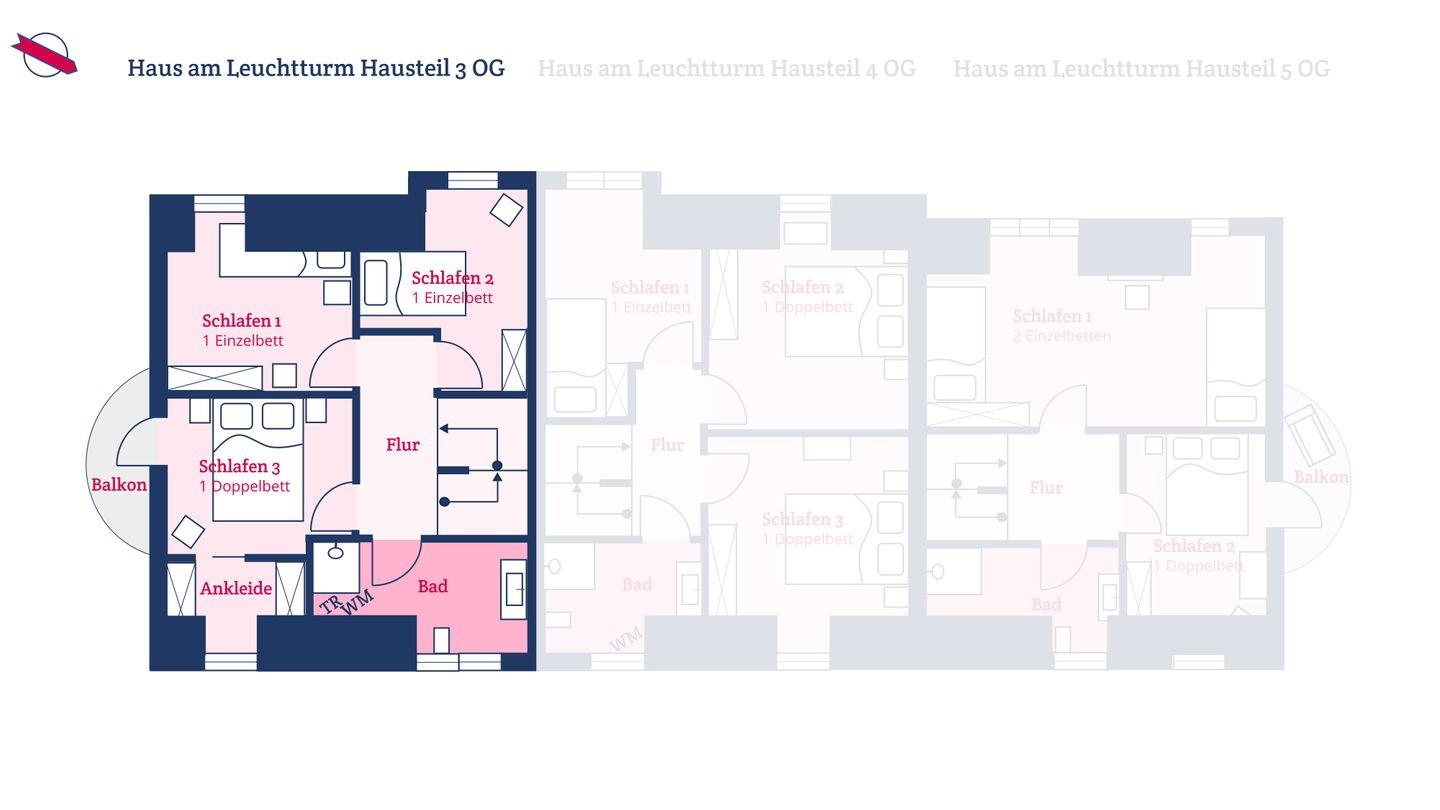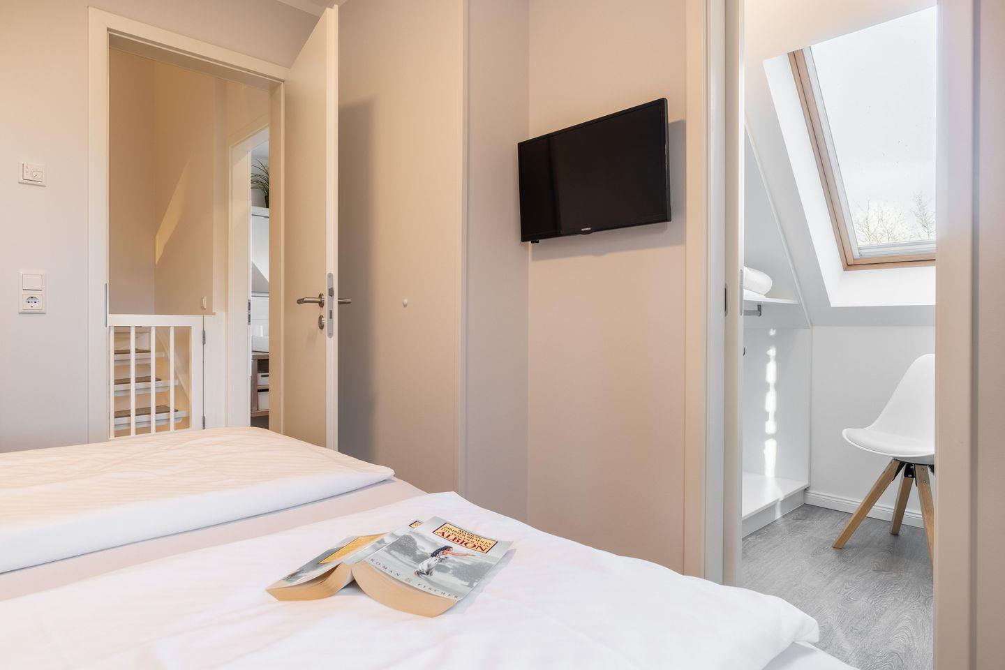 Das Hausteil hat 4 Schlafräume und einen schönen Balkon. Auch ein Parkplatz steht am Ferienhaus zur Verfügung. Das Hausteil erstreckt sich über das Erdgeschoss, 1. Obergeschoss bis zum 2. Obergeschoss. Dieses Hausteil hat eine geschmacksvolle und moderne Ausstattung und ist mit ihren Treppengittern sehr kinderfreundlich eingerichtet.