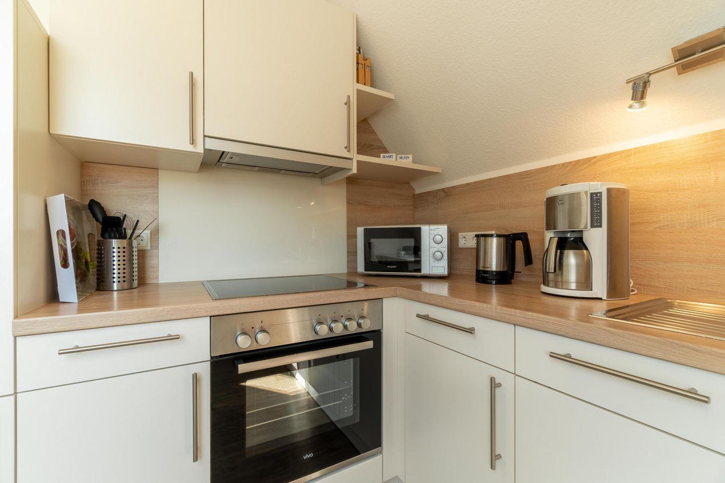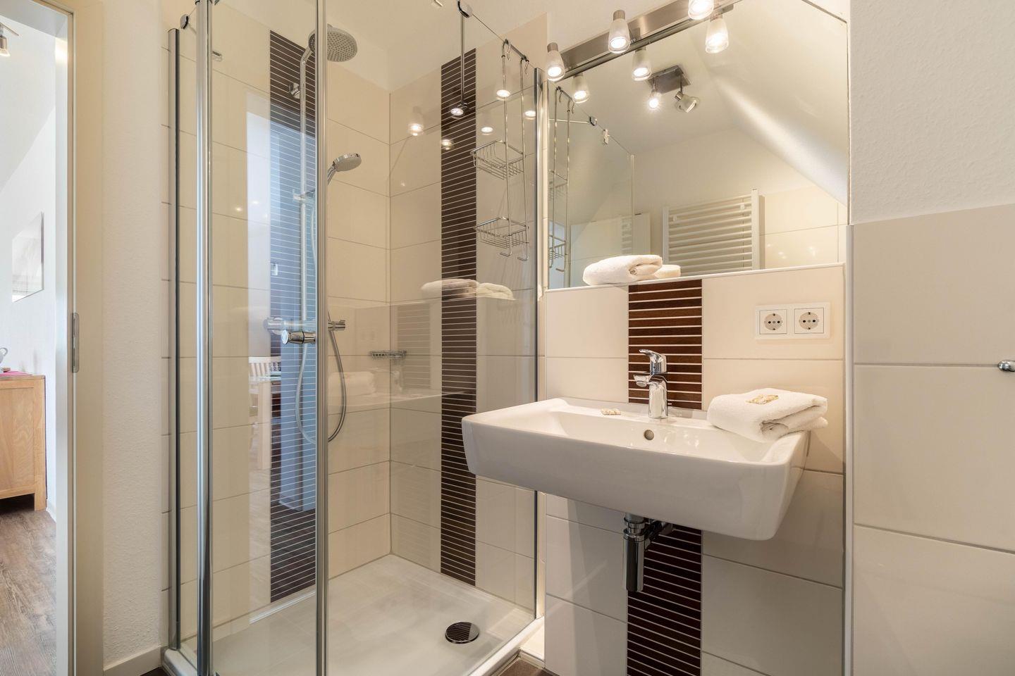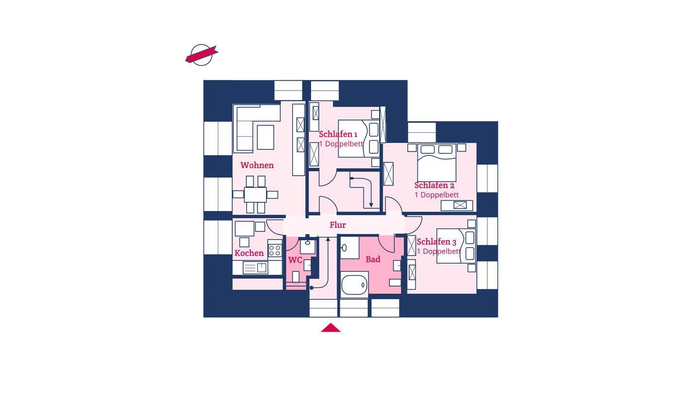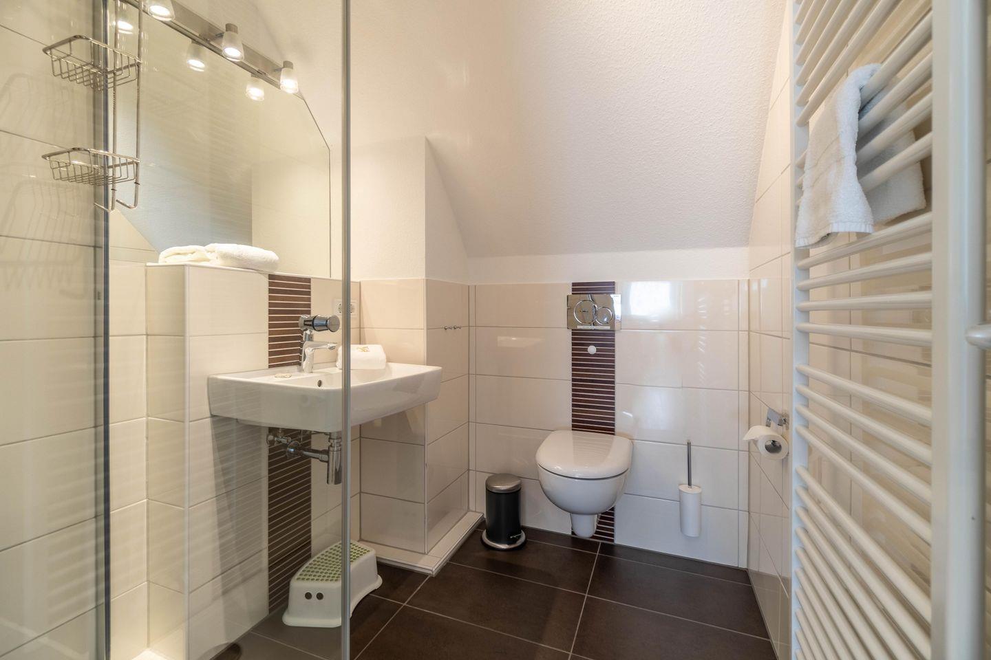 Die Obergeschosswohnung bietet Platz für bis zu 6 Personen und verfügt über ein schönes Wohn-Esszimmer, neue Küche, 3 Schlafzimmer und 2 Badezimmer. Über eine weitere Treppe gelangen Sie in das Dachgeschoss, in welchem sich ein Spielzimmer für die Kleinen befindet. Der Waschraum mit Waschmaschine und Trockner im Keller können von den Gästen beider Ferienwohnungen gemeinschaftlich kostenlos genutzt werden.