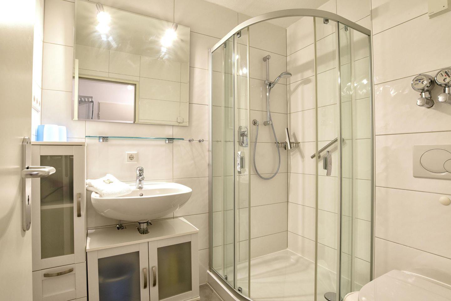 Die Wohnung ist seniorengeeignet und kann (bei etwas zu steiler Rampe zum Hauseingang) stufenfrei über einen Fahrstuhl erreicht werden. Ferner beträgt die Sitzhöhe bei Bett, Sessel, Sofa und WC mindestens 46 cm.