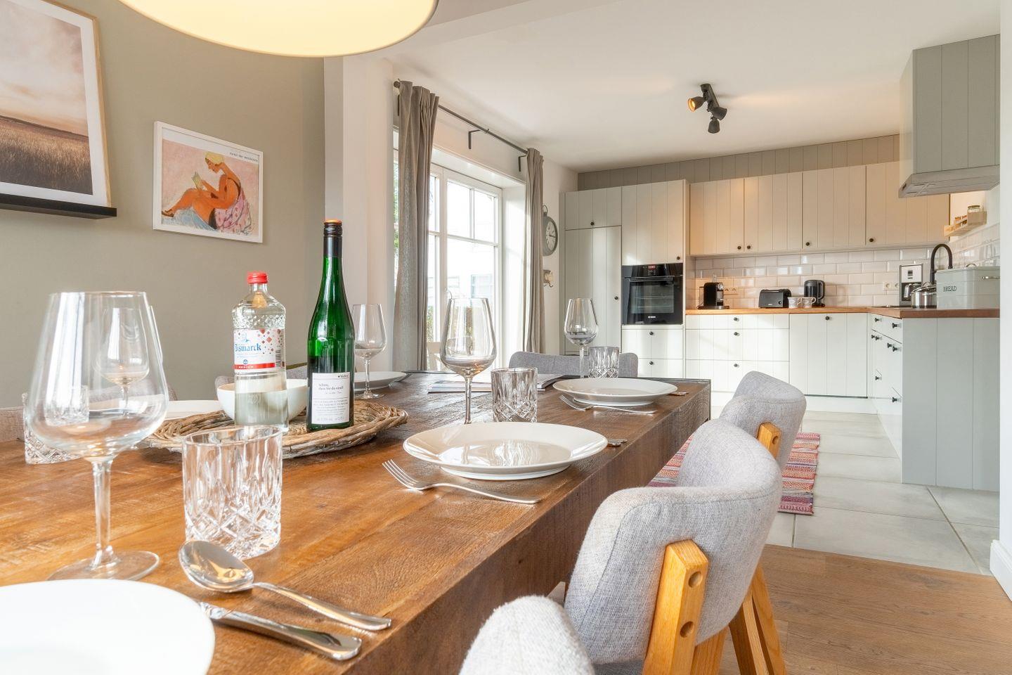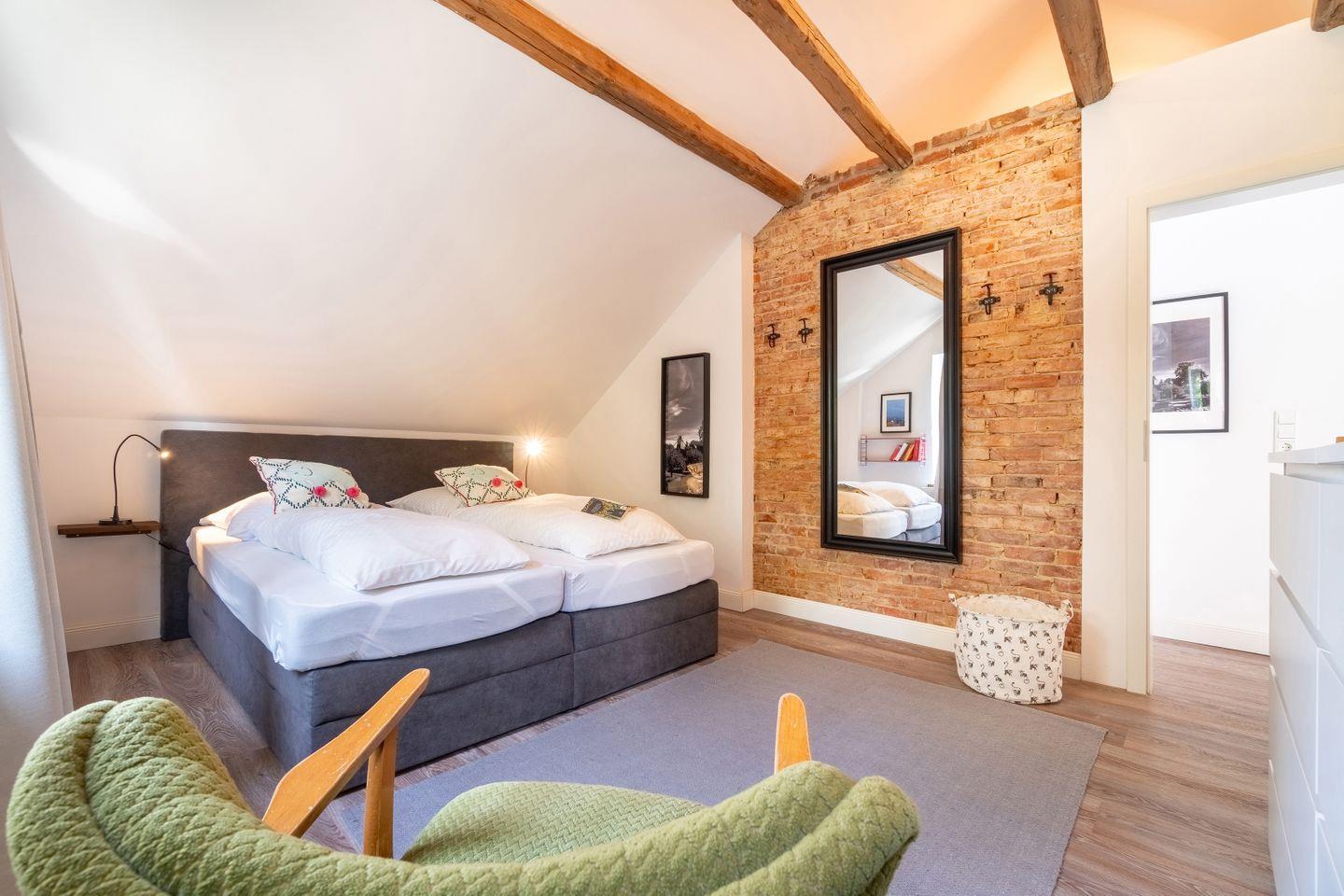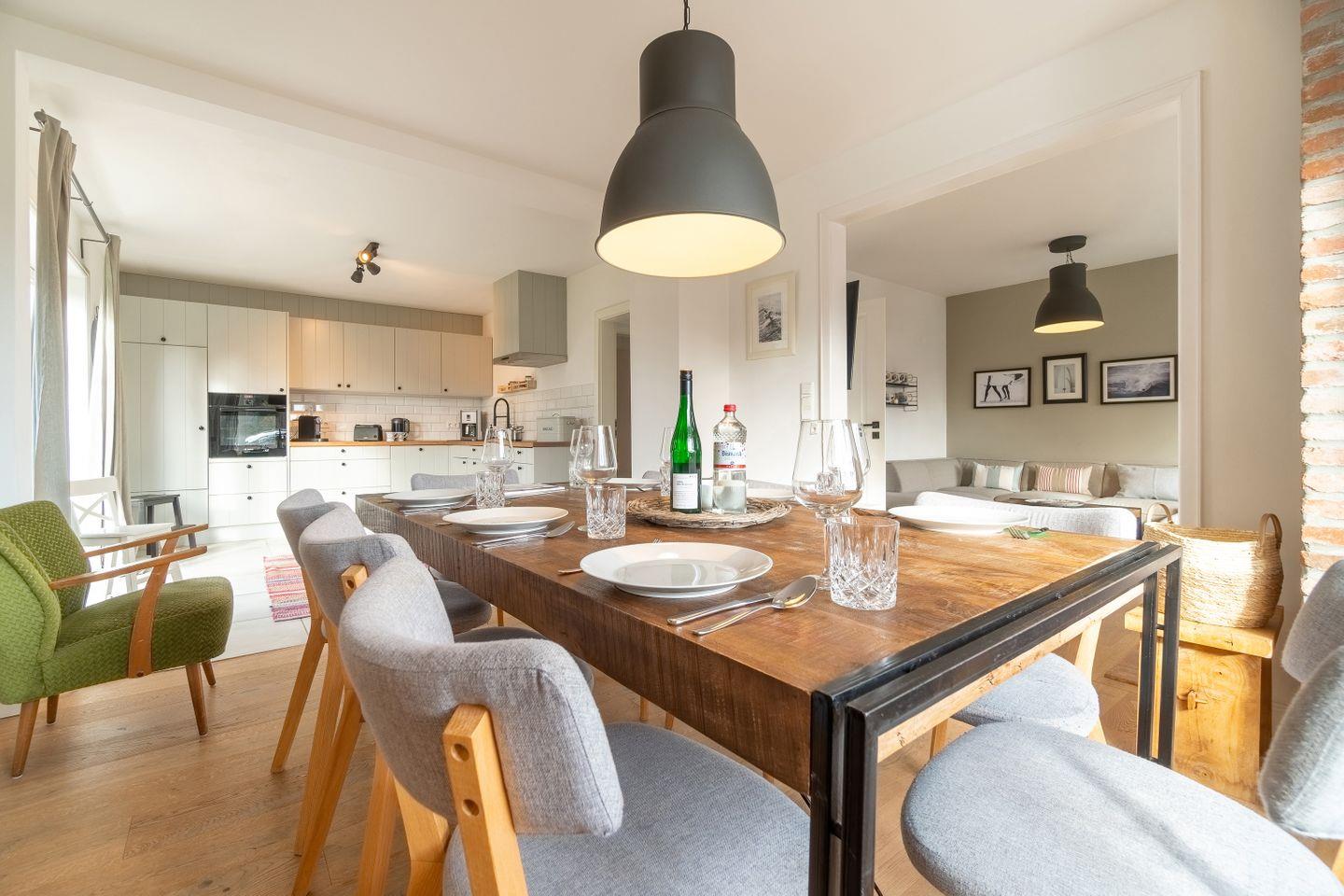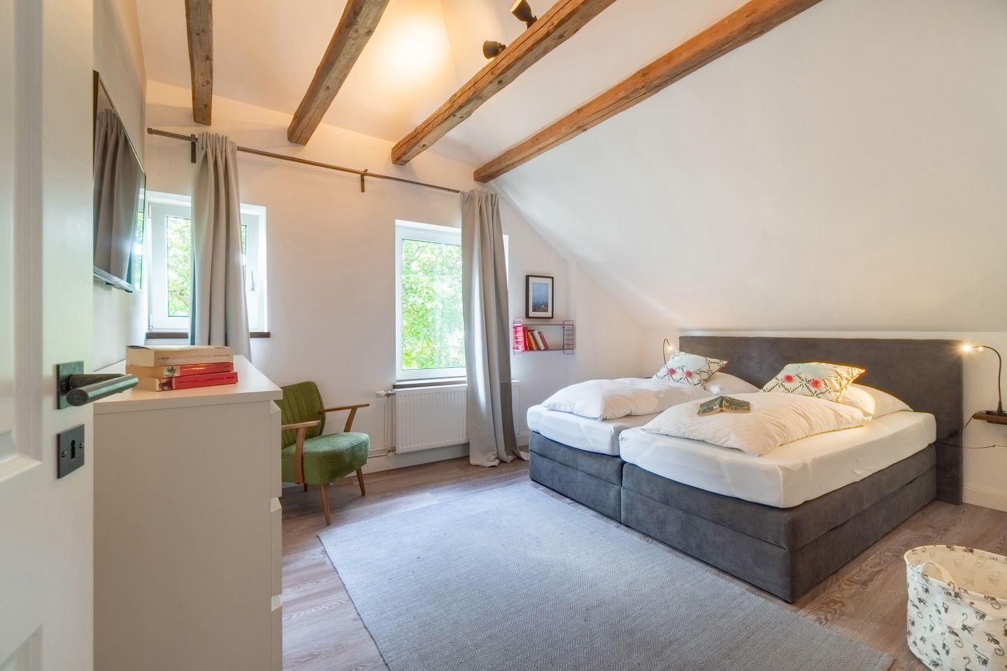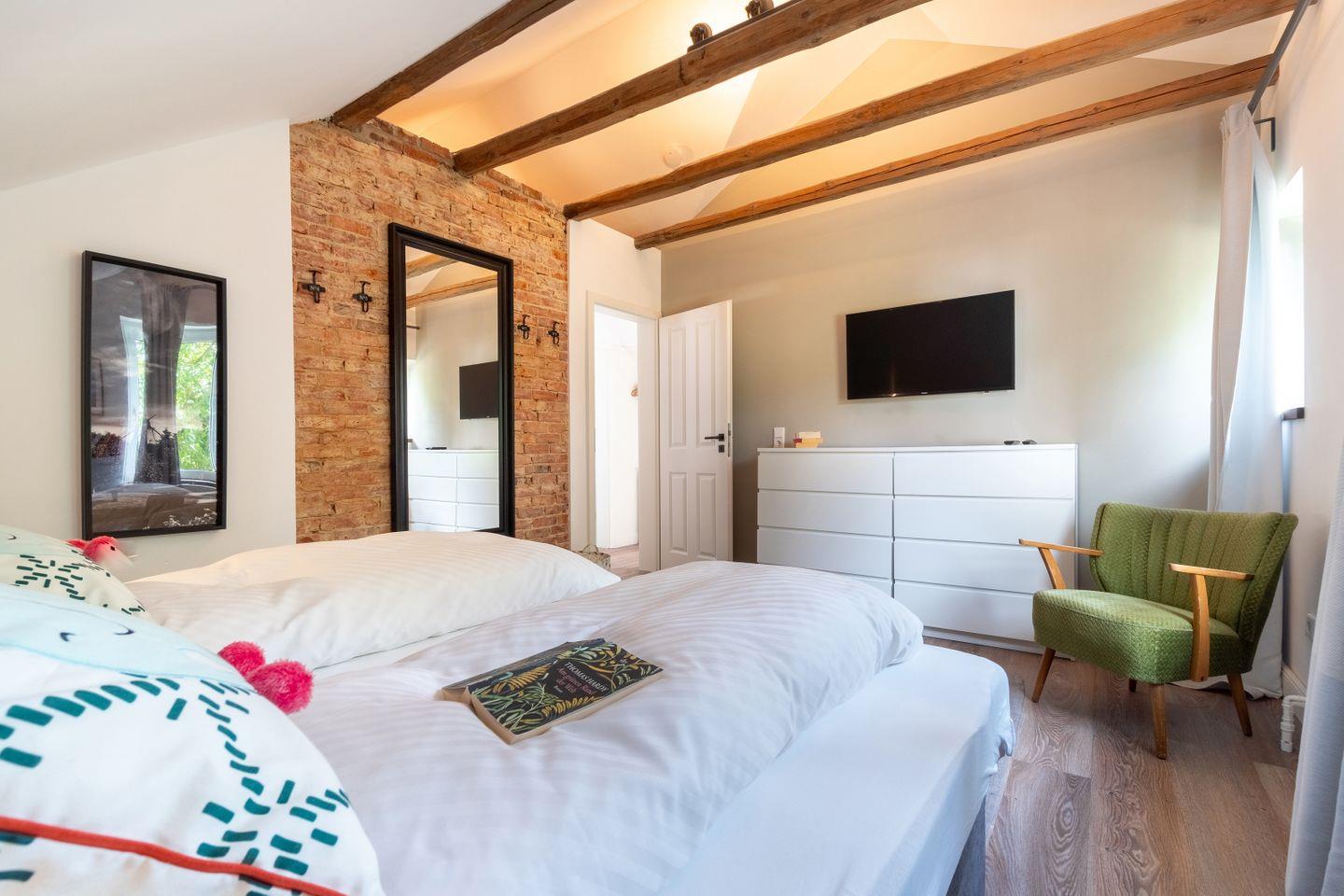 Die Idee: Eine exklusive Mischung von historischen Elementen und modernem Wohnkomfort. Dies ist den Eigentümern des Ferienhauses durchaus sehr gut mit der Renovierung zum Frühjahr 2018 gelungen. Aufgearbeitete Holzbalken, Deckenhöhen bis unters Dach, teilweise Backsteinwände und eine moderne Landhaus-Küche sowie Smart-TVs in drei Schlafräumen und dem Wohnbereich vollenden die Idee bis ins kleinste Detail.