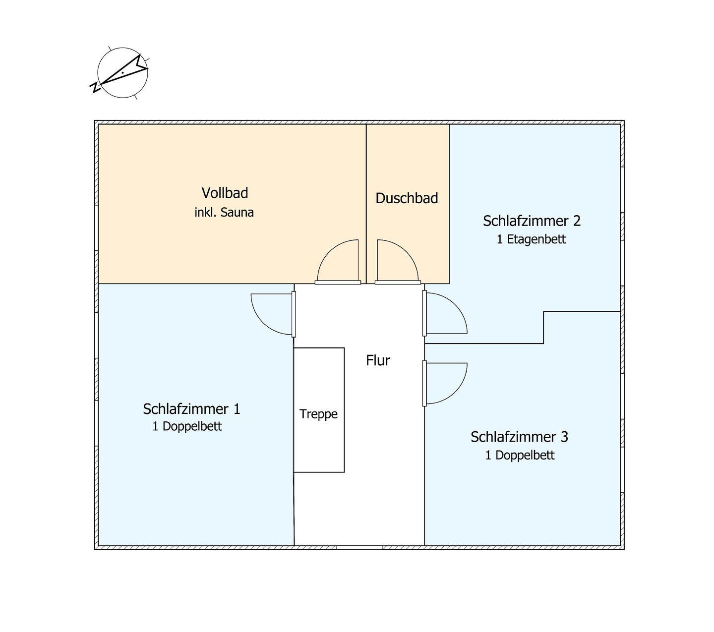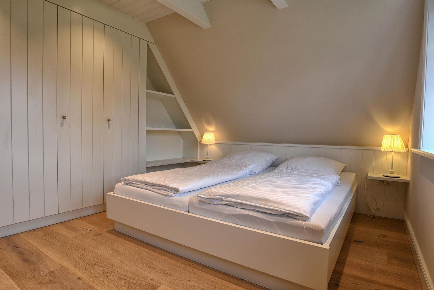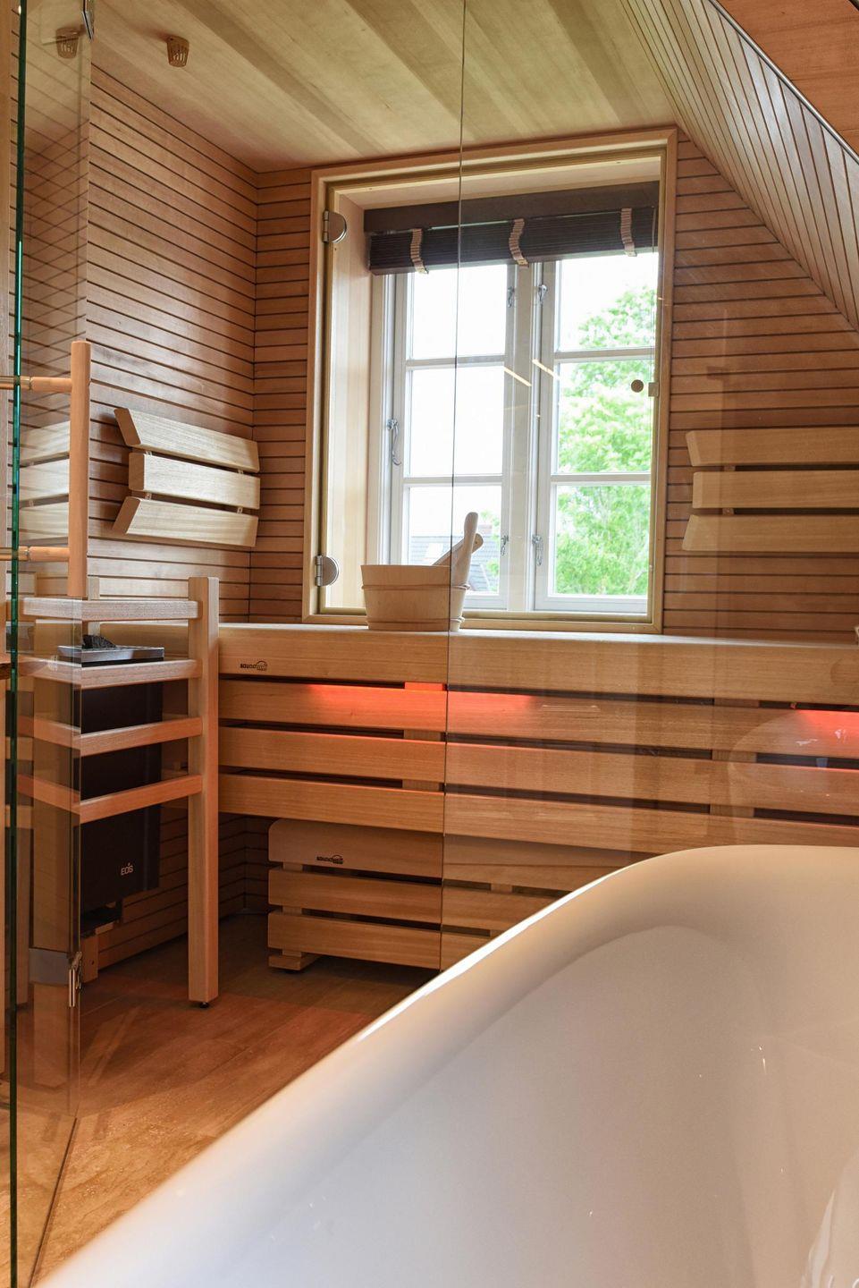Im Obergeschoss befinden sich alle drei Schlafzimmer und zwei Bäder. Alle Schränke und Betten sind von hiesigen Tischlern gefertigt und an die hohen Bedürfnisse der Urlaubsgäste exklusiver Feriendomizile angepasst. Die Sauna mit indirekter Beleuchtung und großer Glasfront, vor der sich die freistehende Badewanne befindet, bilden zweifelsohne das nächste Highlight des Krabbenhus. Das dritte Duschbadezimmer befindet sich ebenfalls im Obergeschoss sowie das Kinderzimmer, in dem ein vom Tischler gefertigtes Etagenbett zu finden ist. Wir möchten Sie bitten, sich das individuell gefertigte Etagenbett auf den Innenbildern des Hauses genauer anzuschauen. Kinder übernachten hier nicht direkt übereinander, sondern in der Vertikalen etwas versetzt - wirklich pfiffig! Zudem verfügt das Haus über eine Fußbodenheizung.
