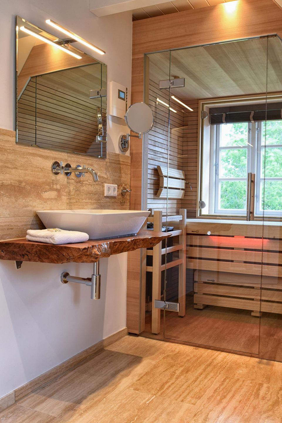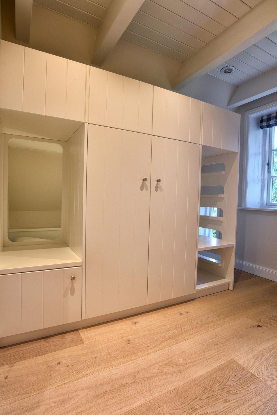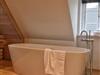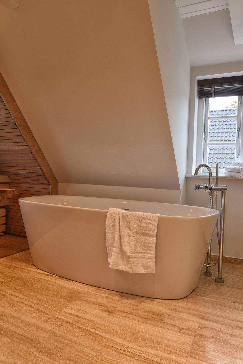 Im Obergeschoss befinden sich alle drei Schlafzimmer und zwei Bäder. Alle Schränke und Betten sind von hiesigen Tischlern gefertigt und an die hohen Bedürfnisse der Urlaubsgäste exklusiver Feriendomizile angepasst. Die Sauna mit indirekter Beleuchtung und großer Glasfront, vor der sich die freistehende Badewanne befindet, bilden zweifelsohne das nächste Highlight des Krabbenhus. Das dritte Duschbadezimmer befindet sich ebenfalls im Obergeschoss sowie das Kinderzimmer, in dem ein vom Tischler gefertigtes Etagenbett zu finden ist. Wir möchten Sie bitten, sich das individuell gefertigte Etagenbett auf den Innenbildern des Hauses genauer anzuschauen. Kinder übernachten hier nicht direkt übereinander, sondern in der Vertikalen etwas versetzt - wirklich pfiffig! Zudem verfügt das Haus über eine Fußbodenheizung.