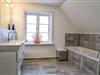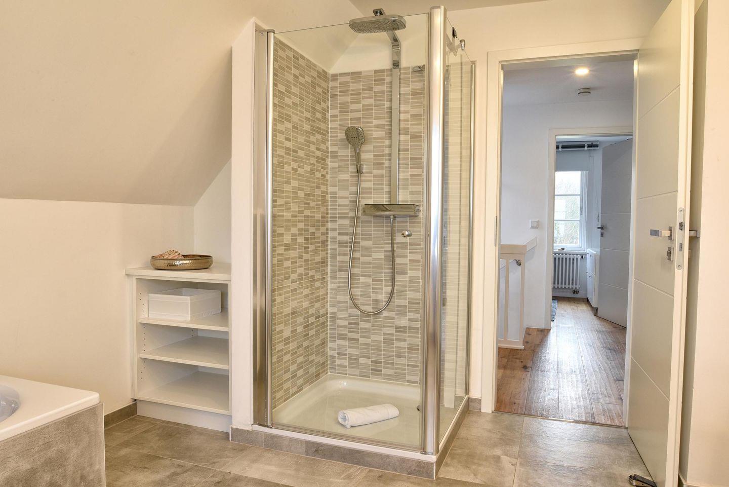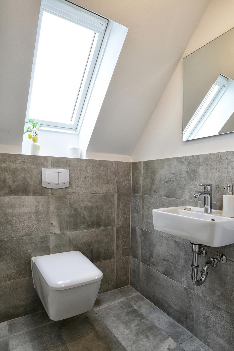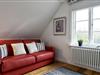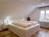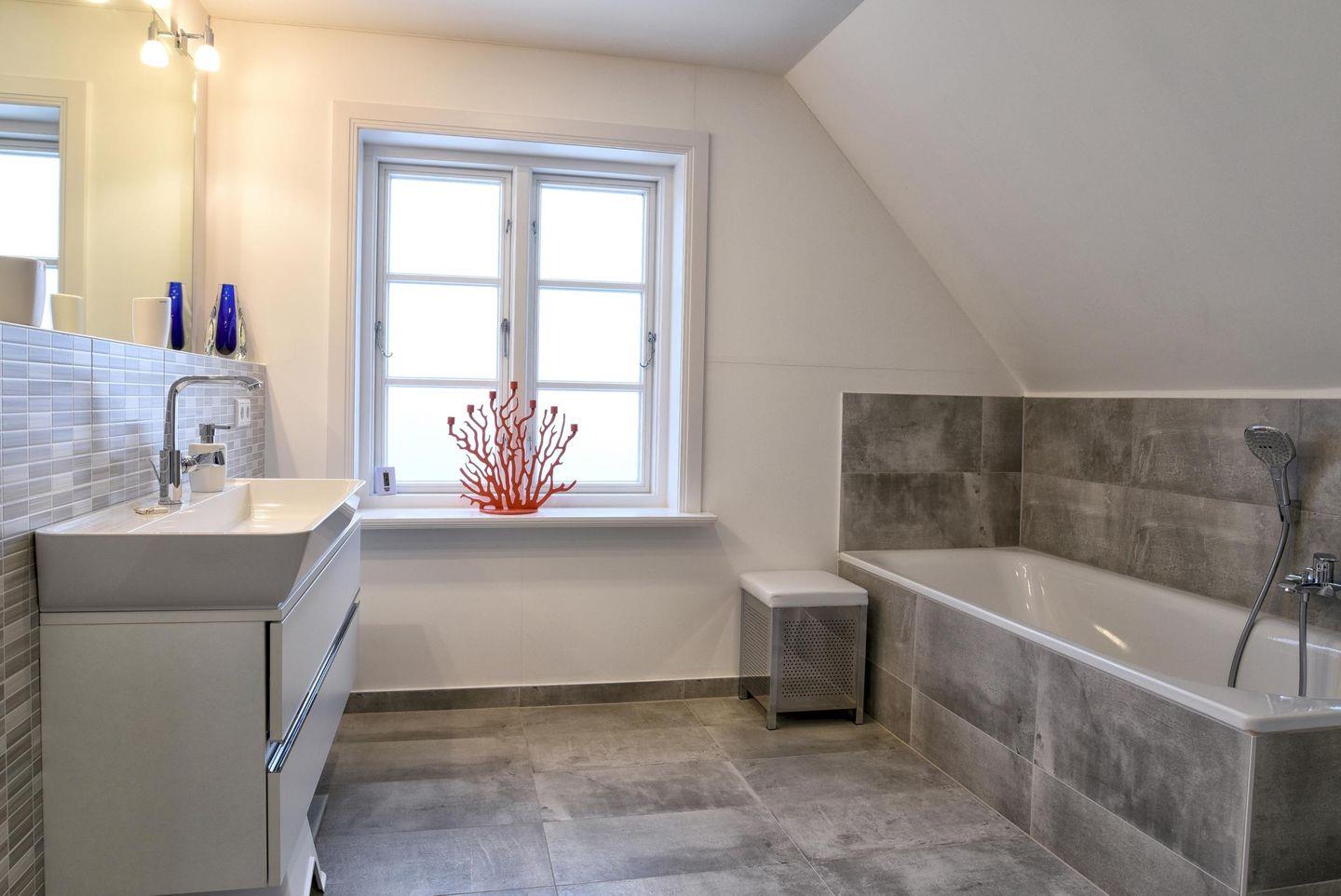 Im Obergeschoss liegen beide Schlafzimmer sowie ein weiteres Zimmer, indem sich eine Schlafcouch und ein Smart-TV befinden. Ebenfalls finden Sie ein Badezimmer mit einer Dusche und einer Badewanne und einer separaten Toilette im Obergeschoss. Die beiden Schlafzimmer sind jeweils mit einem Doppelbett und einem Einbauschrank möbliert. Sämtliche Einbauten wurden von einem Tischler der Insel Föhr handgefertigt.