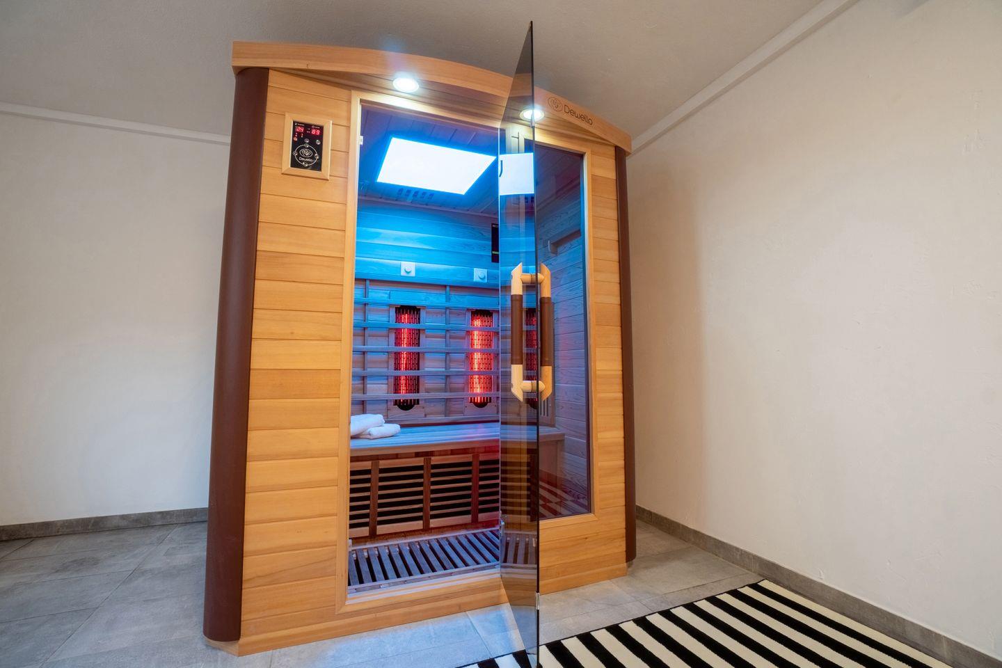 Im Kellergeschoss warten neben Waschmaschine und Trockner auch die hauseigene Infrarotkabine und eine weitere Dusche auf Sie.