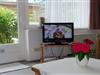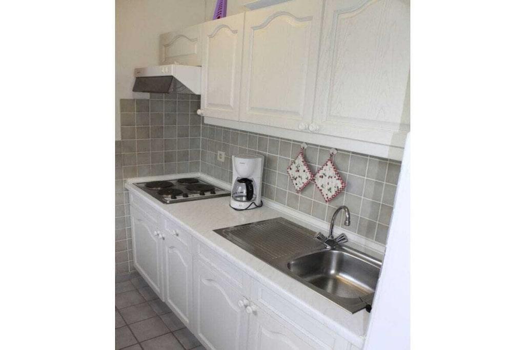 Ground floor: (Living/bed room(Armchair, Bed Linen, Sofa, Wardrobe, single bed, double bed, TV, TV, dining table, radio)) Hot Water, Vacuum Cleaner, Kitchen(Egg Cooker, Tea Towels, Kitchenette, stove, electric kettle, toaster, cooker, coffee machine, fridge, freezer), bedroom(Bed Linen, Wardrobe, single bed, radio), bathroom(Mirror, toilet, shower, washbasin), terrace(Sun Umbrella, garden furniture), terrace(Sun Umbrella, garden furniture), parking, ironing board, iron, drying cabinet, Laundry Package for a fee