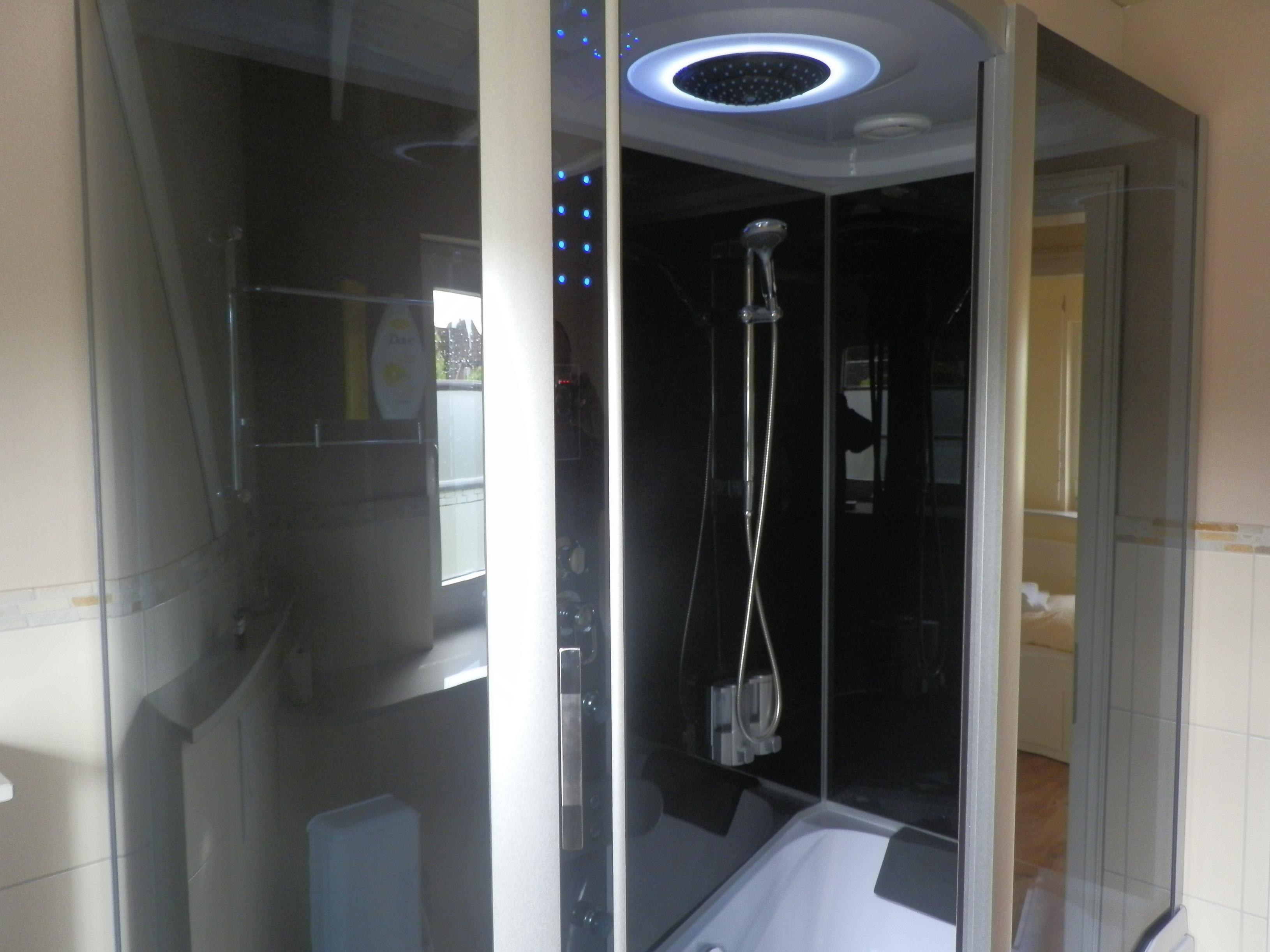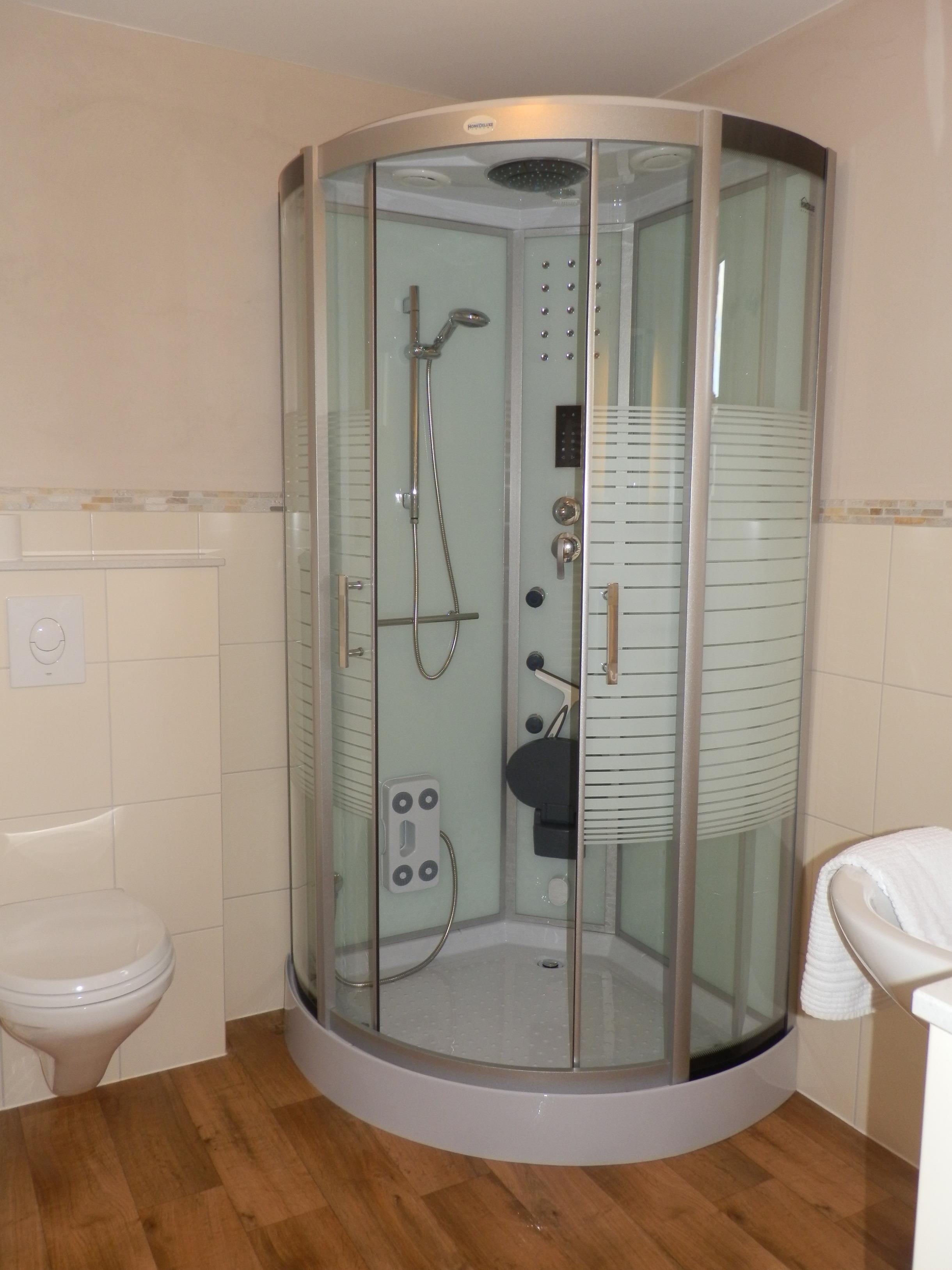 Im Erdgeschoss befindet sich der Wohnbereich mit HD SAT-TV; SmartTV(InternetTV); Blu-ray Player; WlanInternet; Musikanlage CD & Dänischer Holzofen. Die moderne Küchenzeile mit einem großem Esstisch und ein Badezimmer mit Dampfduschkabine befinden sich ebenfalls im Erdgeschoss. Auf der Blickgeschützten WPC (ist splitterfrei und Barfuß geeignet) Terrasse stehen zwei Relaxliegen für die Entspannung nach der Dampfsauna zur Verfügung.